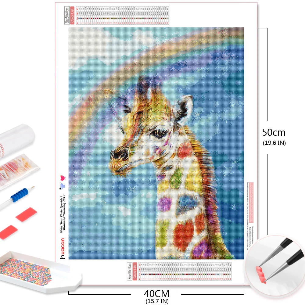 Алмазная 5D картина HUACAN с жирафом, алмазная вышивка, животное, фотоукрашение для дома