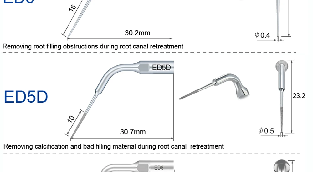 E5D: удаление кальцификации и плохого наполнения материала во время восстановления корневых каналов