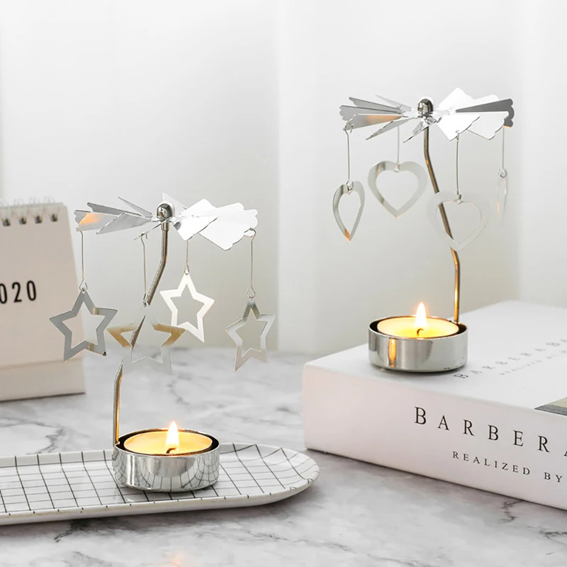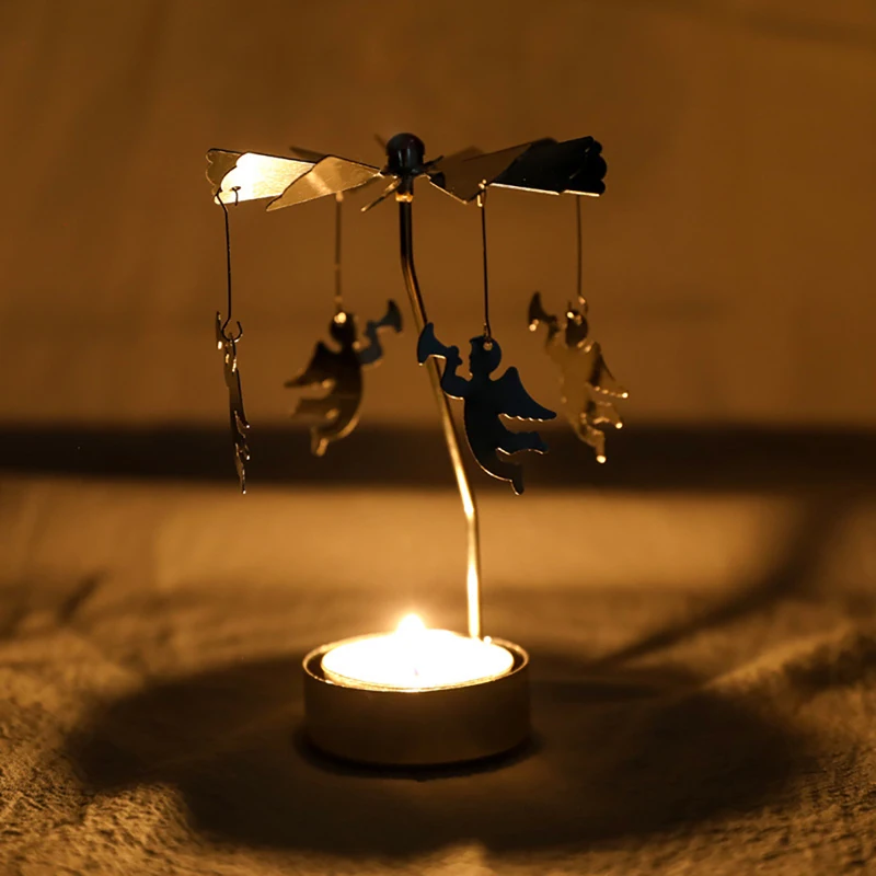 Candleholder использует технологию термического вращения. После освещения свечи, висячая часть выше будет вращаться медленно, что является новым и уникальным.