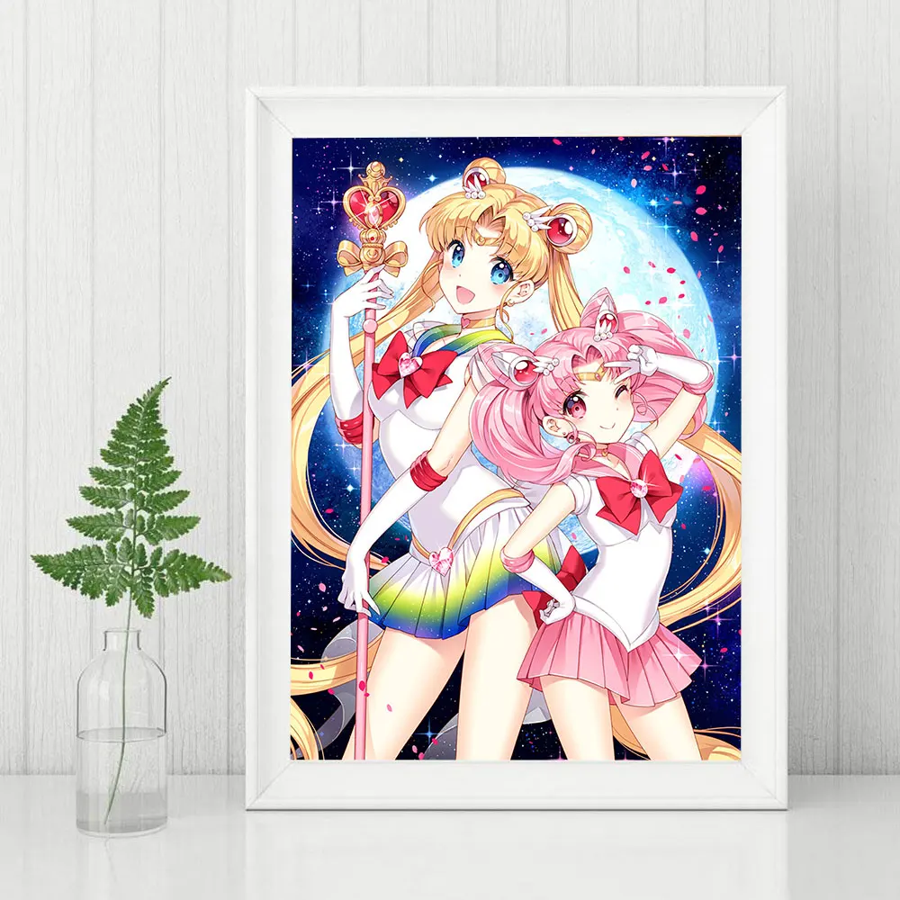 Алмазная живопись сделай сам, Аниме Вышивка с персонажами Сейлор Мун, мозаичная картина, настенные Стикеры, Современное украшение для дома, алмазная вышивка