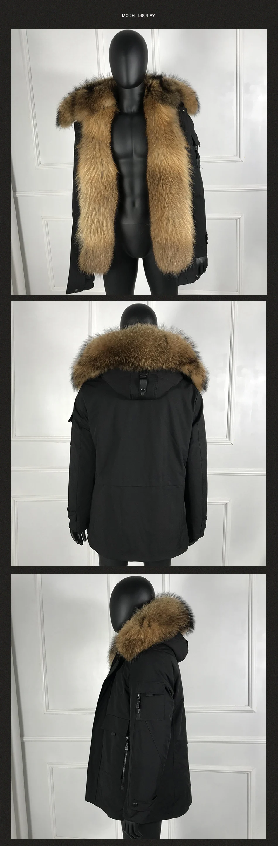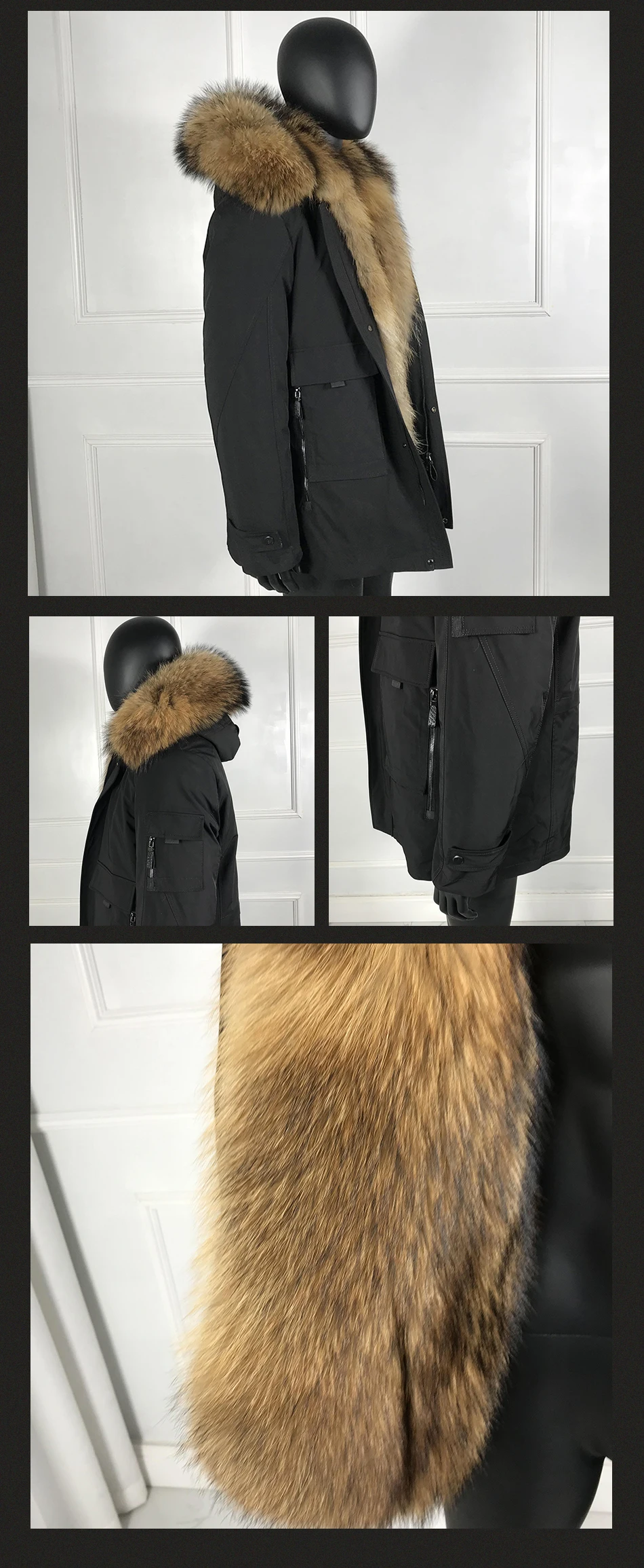 Мужские парки из натурального меха енота, классическое повседневное...