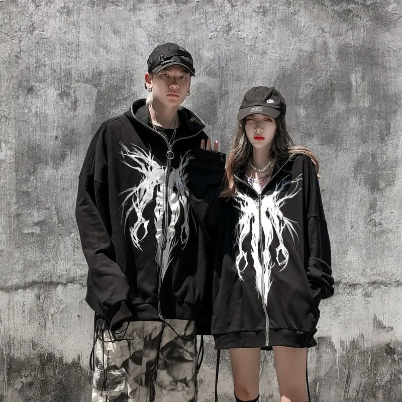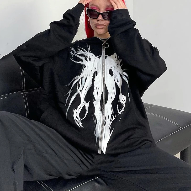 Женская толстовка на молнии, с графическим принтом, в готическом стиле