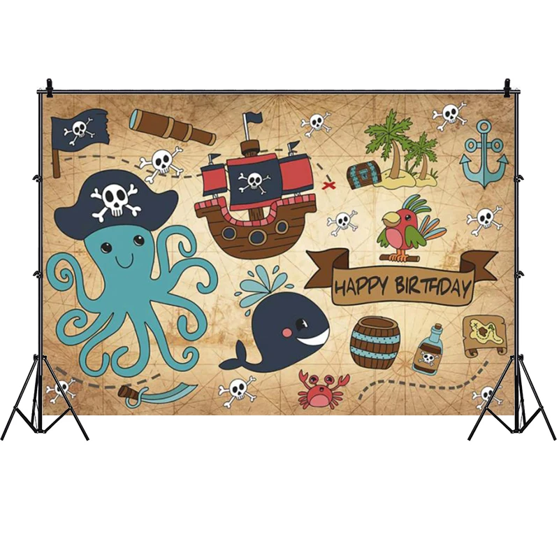 Пиратский фон для фотосъемки, детский душ, осьминог, вечеринка в честь Дня Рождения, для мальчиков и девочек, фон для фотосъемки, баннер, украшение