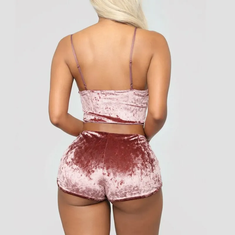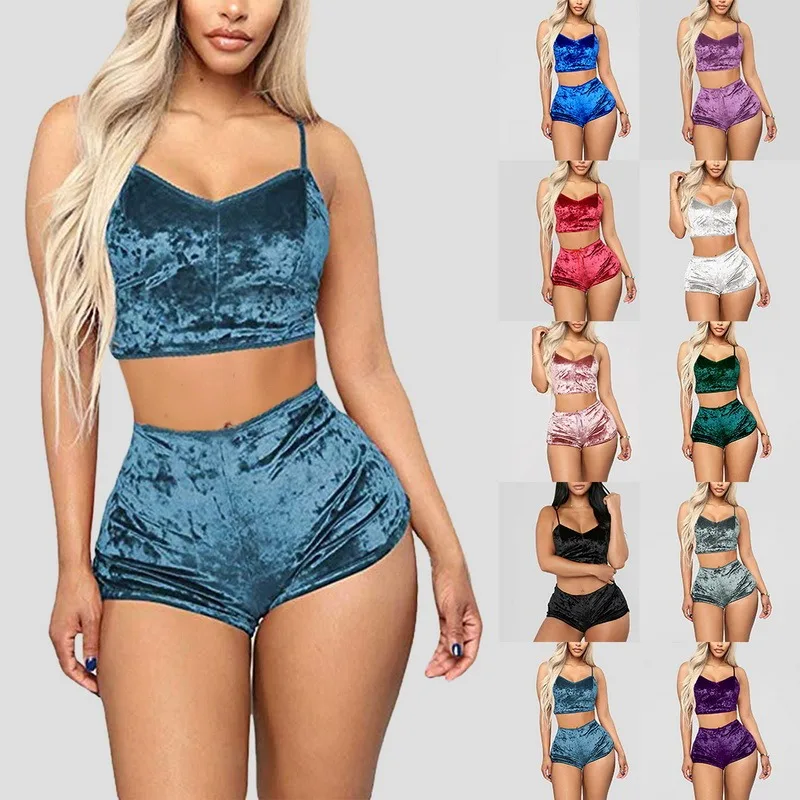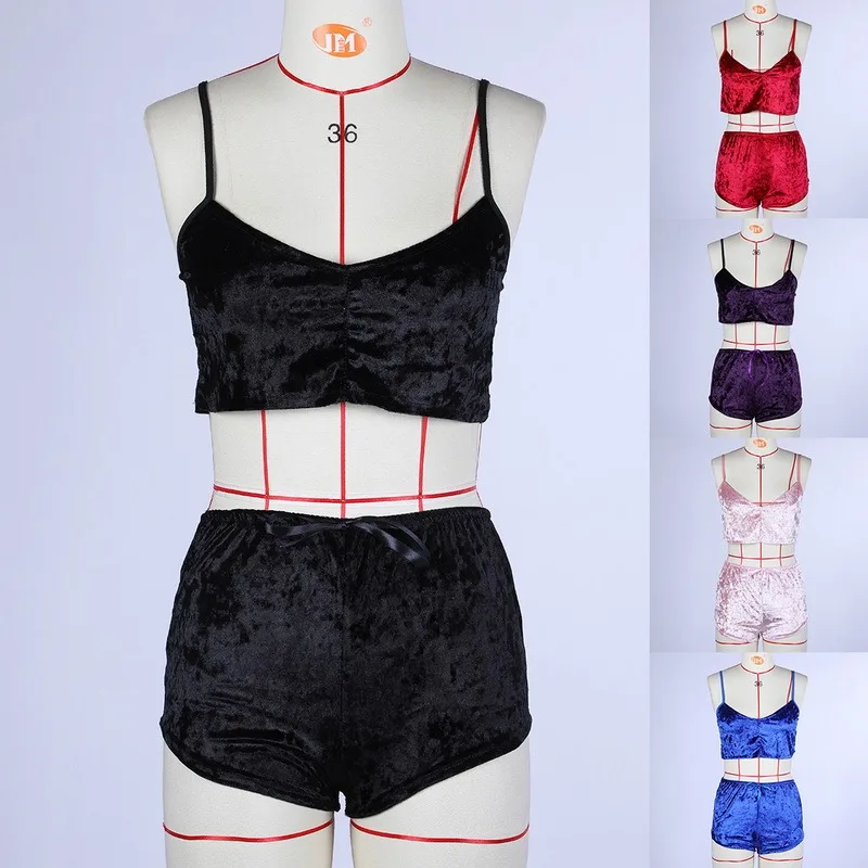 Летний женский бархатный пижамный комплект на бретельках, привлекательный короткий пижамный комплект на бретельках, большой размер, Подарок на годовщину свадьбы