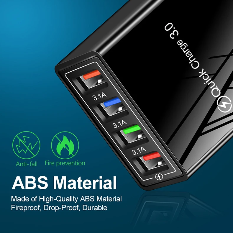 Зарядное устройство с 4 USB-портами и поддержкой быстрой зарядки, 3,0