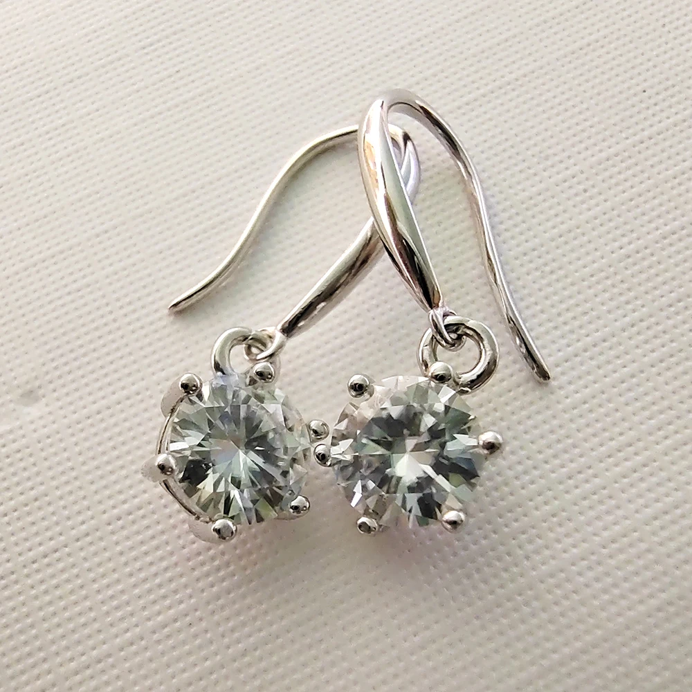 Серьги драгоценные камни: 1CT 6,5 мм D Цвет моиссанит (сертификат + Алмазный тест)