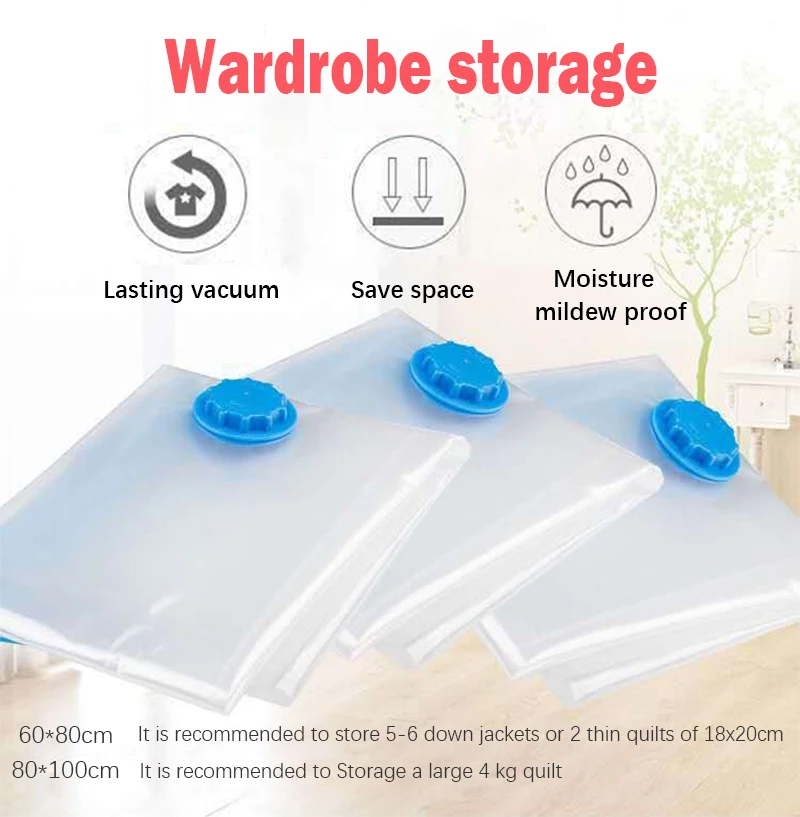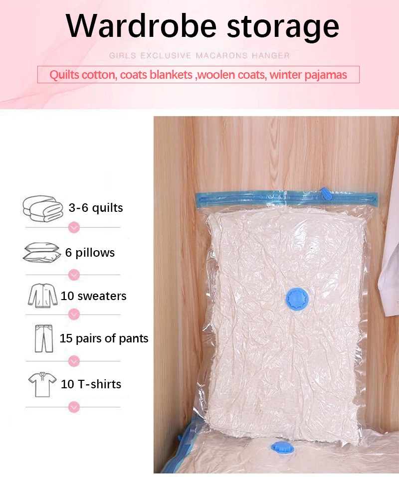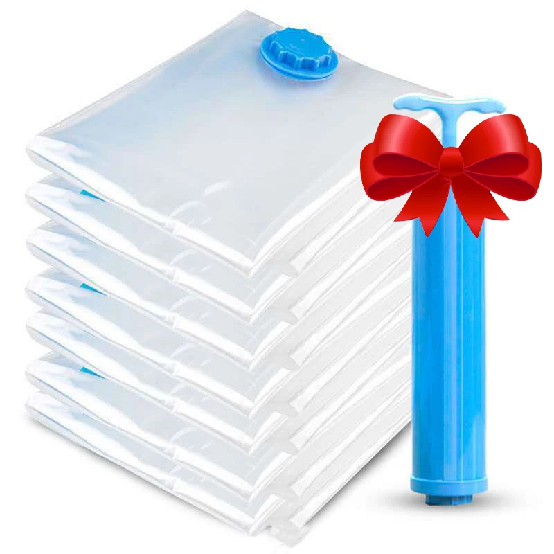 Вакуумная компрессионная сумка для хранения, Домашний Прозрачный органайзер для подушек и одеял, компактный дорожный ручной насос, набор компрессионных пакетов