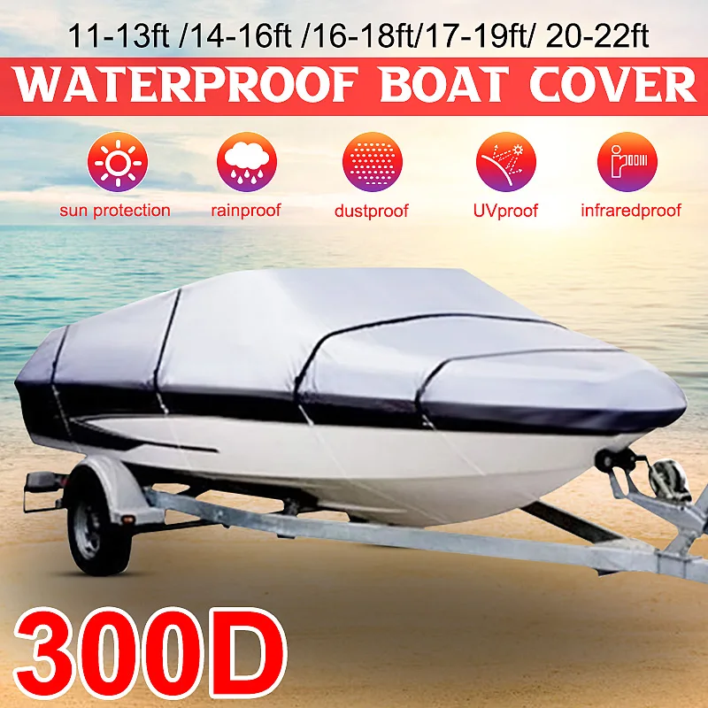Чехол для яхты 11-22 фута, чехол для лодки 300D из полиуретана Оксфорд, водонепроницаемые, с защитой от УФ-лучей, сверхпрочные, морские, трейлерные, холщовые аксессуары для лодок