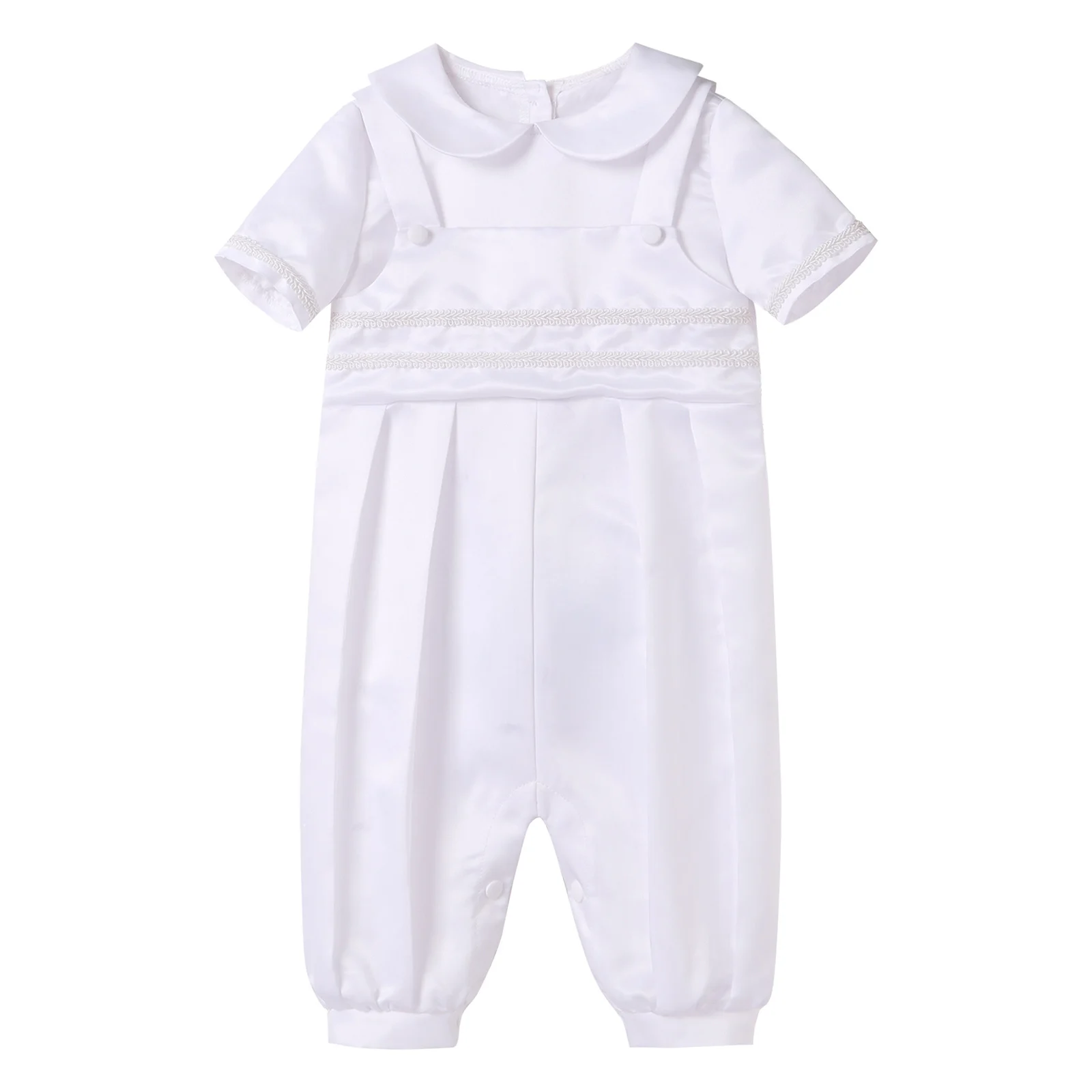 Особенности: Изготовлен из высококачественного материала, легкий светильник, мягкий, дышащий и удобный для ношения ребенка, очень гладкая поверхность на ощупь. Боди с короткими рукавами и кукольным воротником; Стиль на подтяжках; Пуговица сзади и снизу; Простой однотонный цвет. Дизайн со специальной кружевной вышивкой, джентльменский стиль, это идеальный подарок для вашего мальчика на день рождения. Таблица размеров означает возраст для мальчиков, но они предназначены только для общего руководства, ручная стирка в холодной воде и сушить в подвешенном состоянии. Подходит для любого случая, повседневной жизни, одежда на крещение, танцевальная одежда, фотосессия, повседневная одежда, на открытом воздухе, на день рождения и так далее.