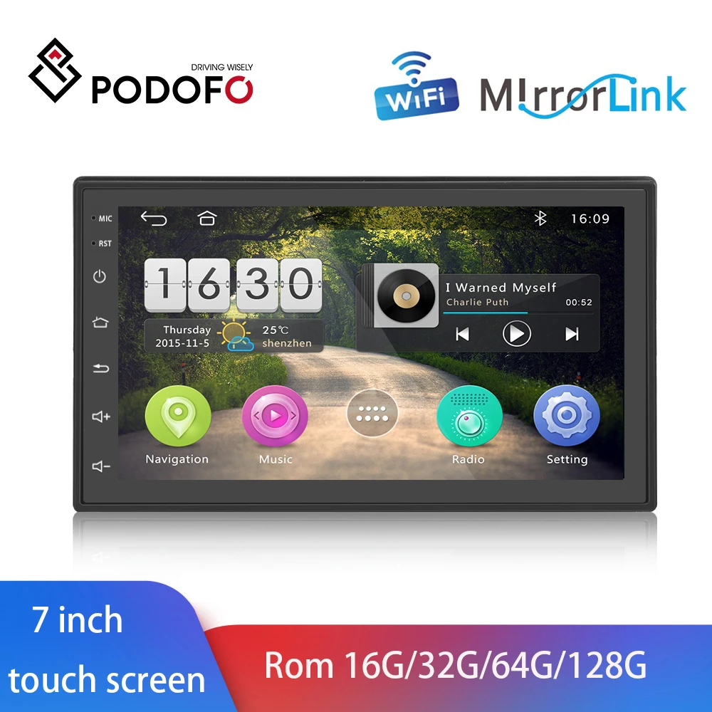 Podofo 2 din Android 9,1/10,0 автомобильный радио мультимедиа MP5 плеер GPS навигация Wifi 7 "Универсальный Авторадио BT FM USB аудио стерео ВИДЕО DVD плеер для Volkswagen Nissan Toyota Hyundai Polo