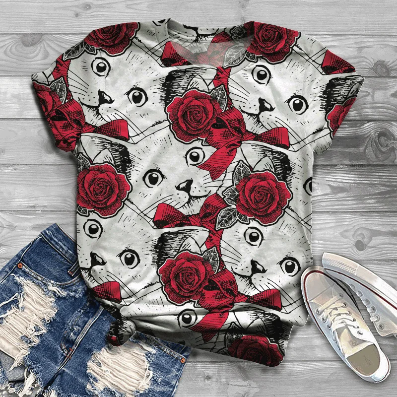 Футболка женская с 3D-принтом животного, Модный повседневный городской топ с коротким рукавом, с стрекозой, кошкой, удобная спортивная рубашка, лето