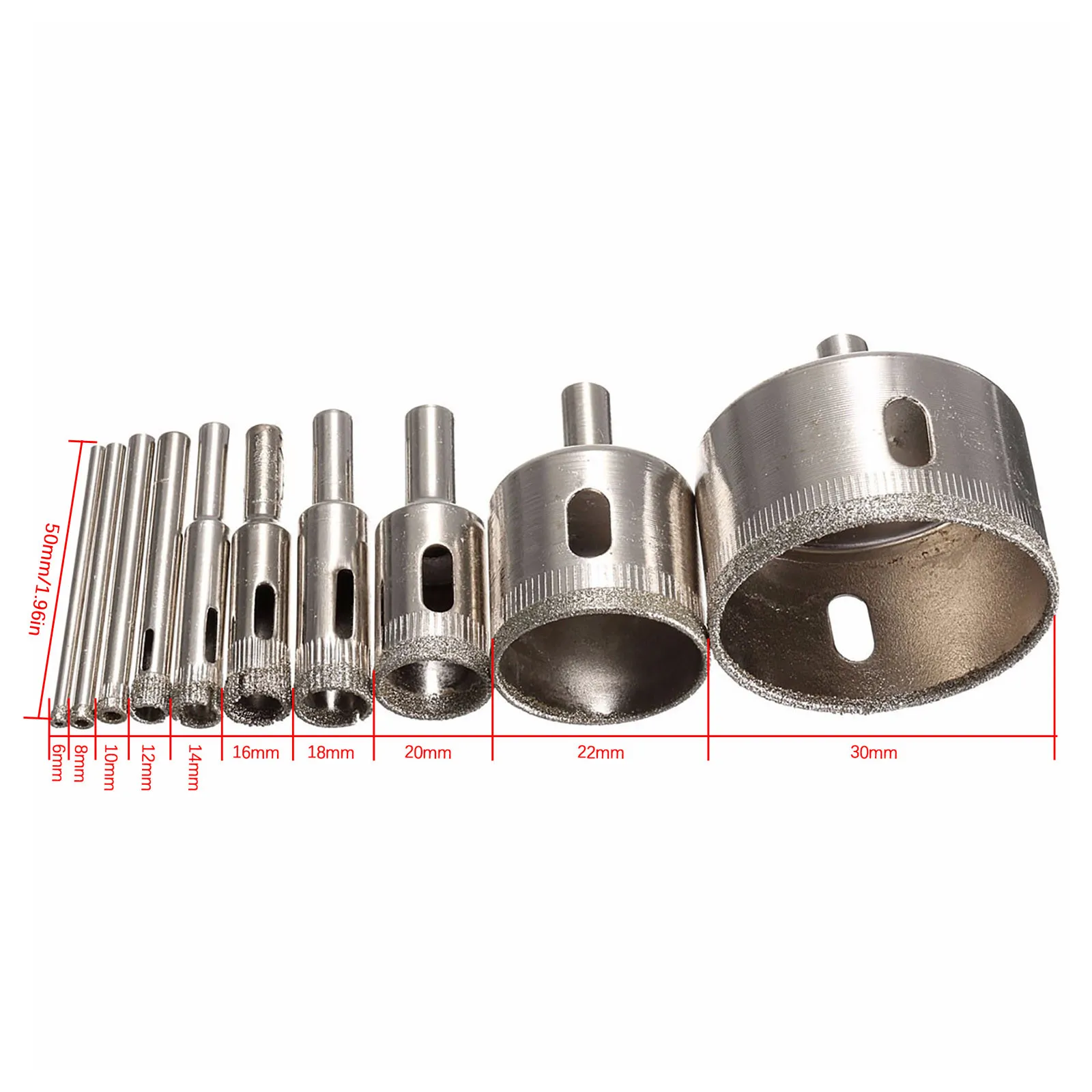 Алмазная пила для отверстий, набор из 10 насадок 6-30 мм для керамического стекла и фарфора