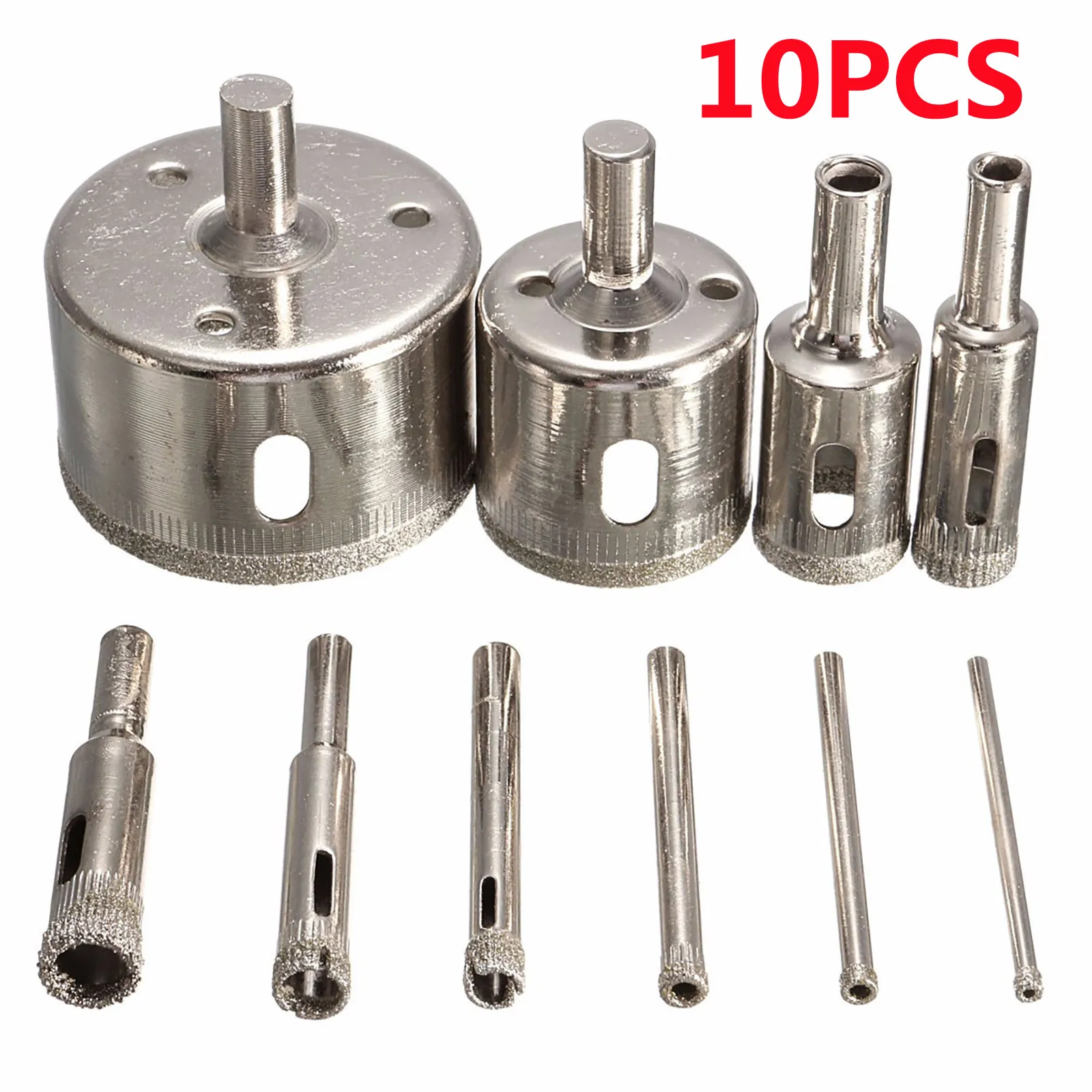 Набор сверл для алмазного отверстия, набор из 10 насадок 3-50 мм, для плитки, стекла, керамики, стекла, фарфора, гальванического покрытия
