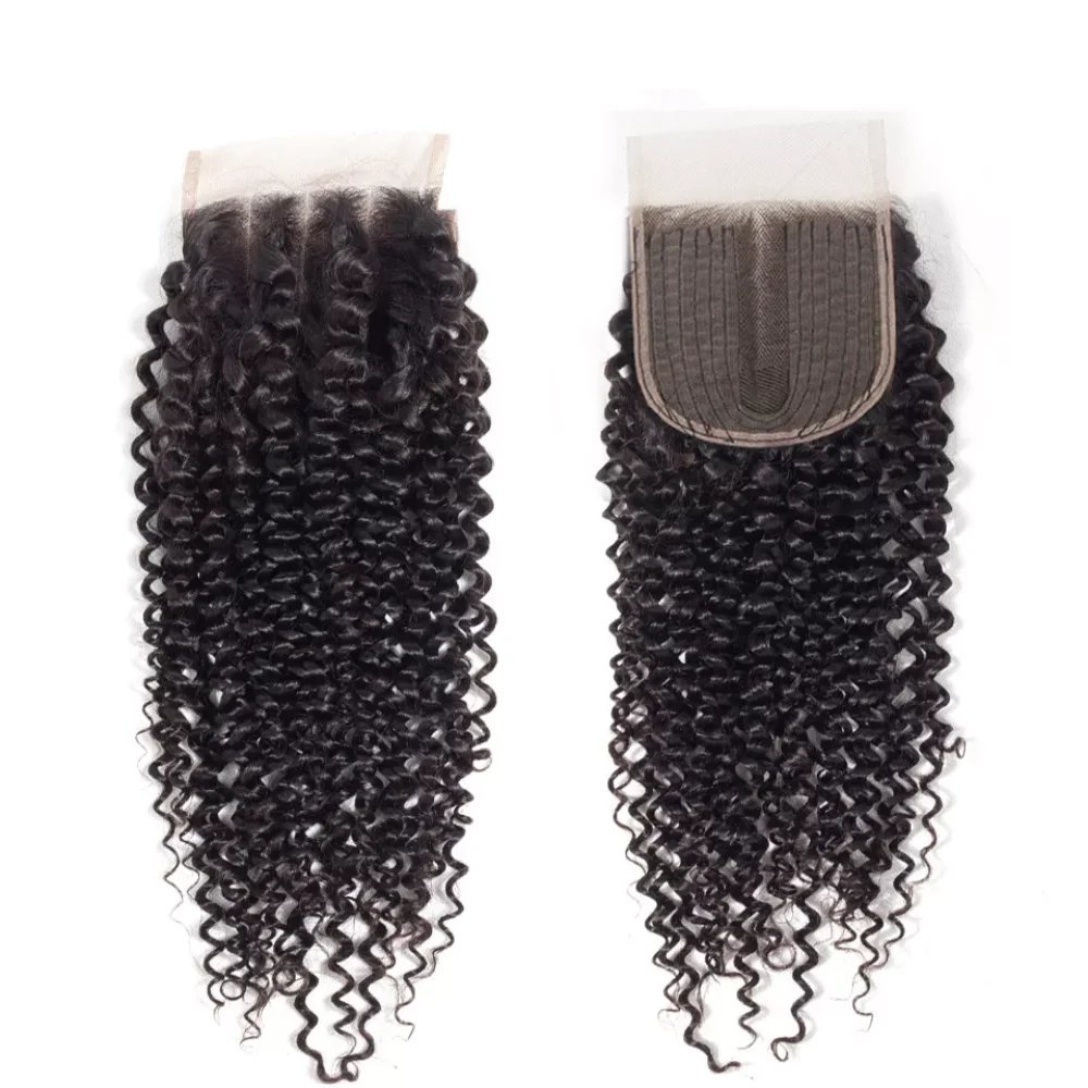 4x4 Курчавые Кудрявые человеческие волосы застежка 4X4 кружевная за...