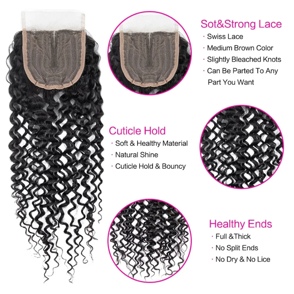 Кудрявые вьющиеся человеческие волосы 4x4, кружевная застежка, 100%...