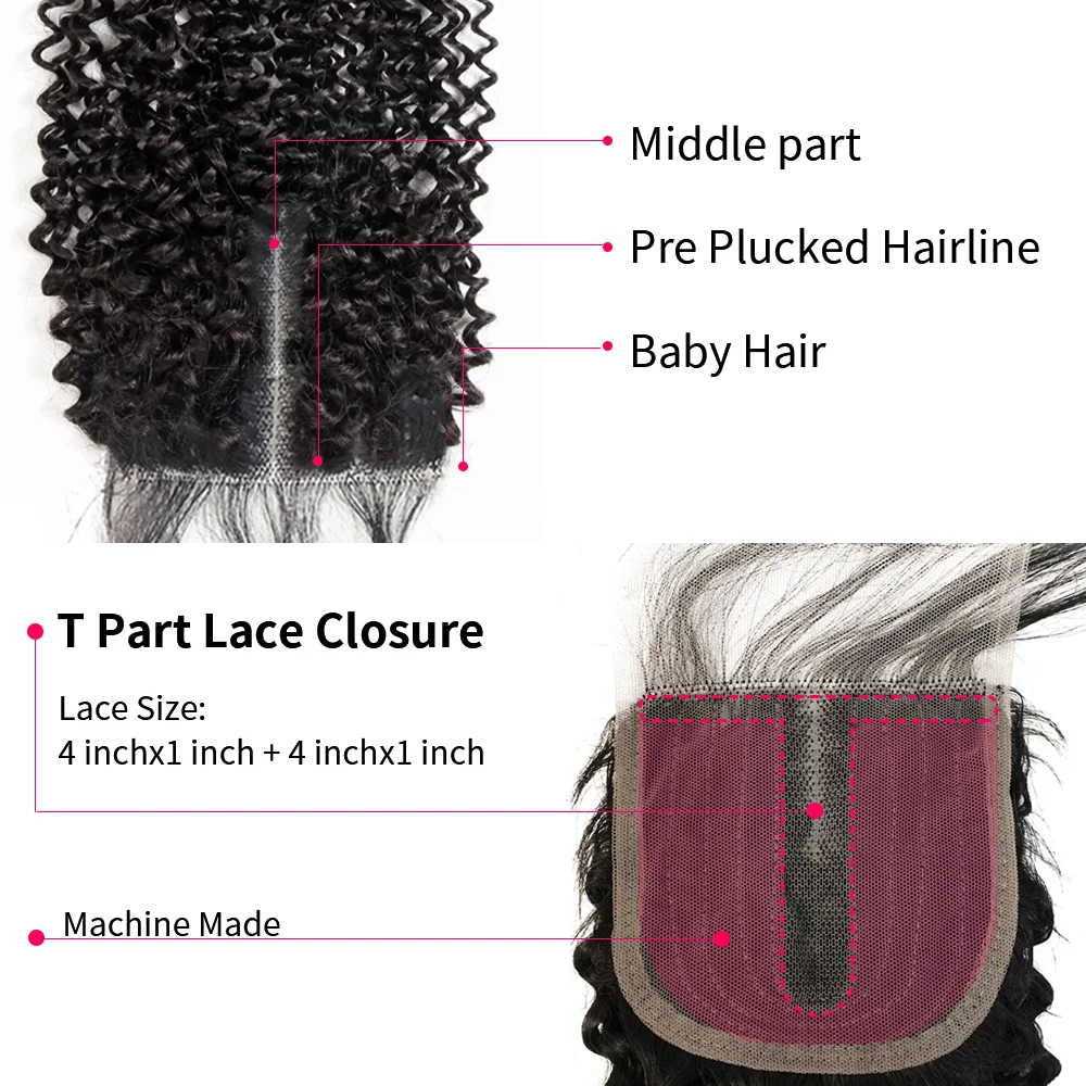 HD кружево 4x1 T Часть Кружева Закрытие Курчавые Кудрявые бразильск...