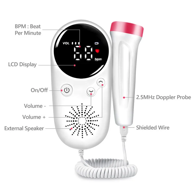 Ультразвуковой фетальный допплер, портативный детектор беременности и плода, детский сонар, фетальный допплер для беременных