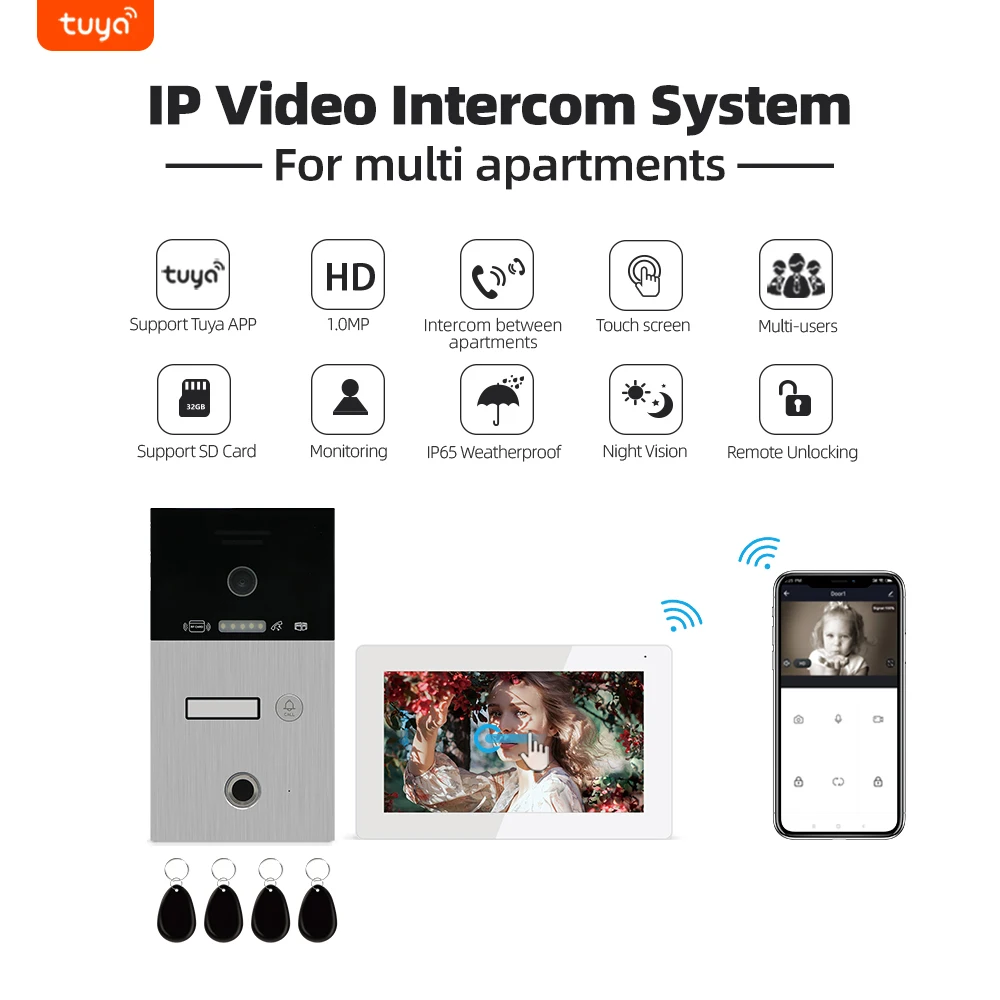 Умный видеодомофон jeatone Tuya, 7 дюймов, Wi-Fi, IP