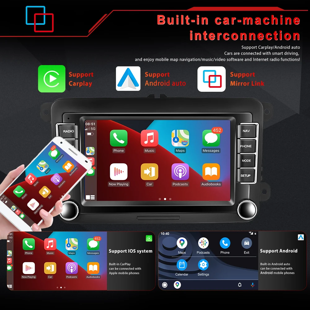 ● FM/AM/RDS радио: онлайн-музыка может быть передана на автомобильную стереосистему через FM, чтобы наслаждаться оригинальным автомобильным стерео, 30 предустановленных радиостанций, высококлассный радиочип, мощное шумоподавление и защита от помех, поддержка функции FM/AM RDS, чистый поиск каналов и низкий уровень шума
