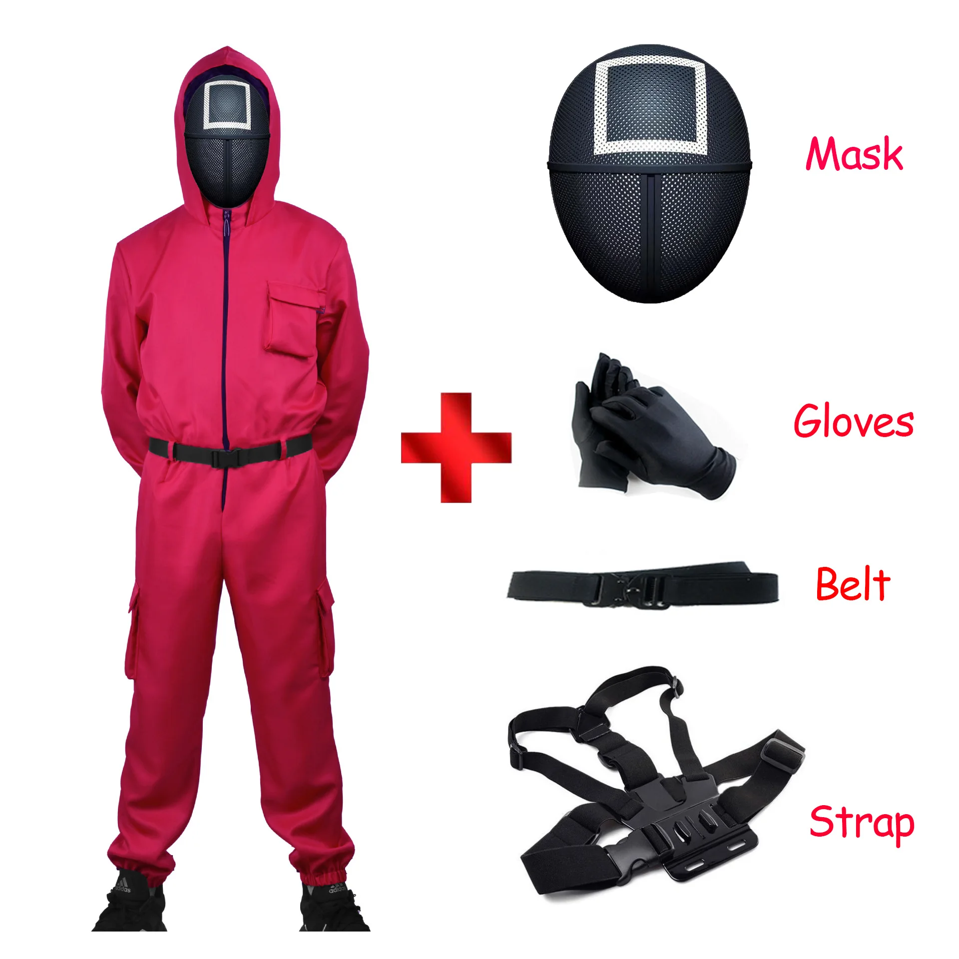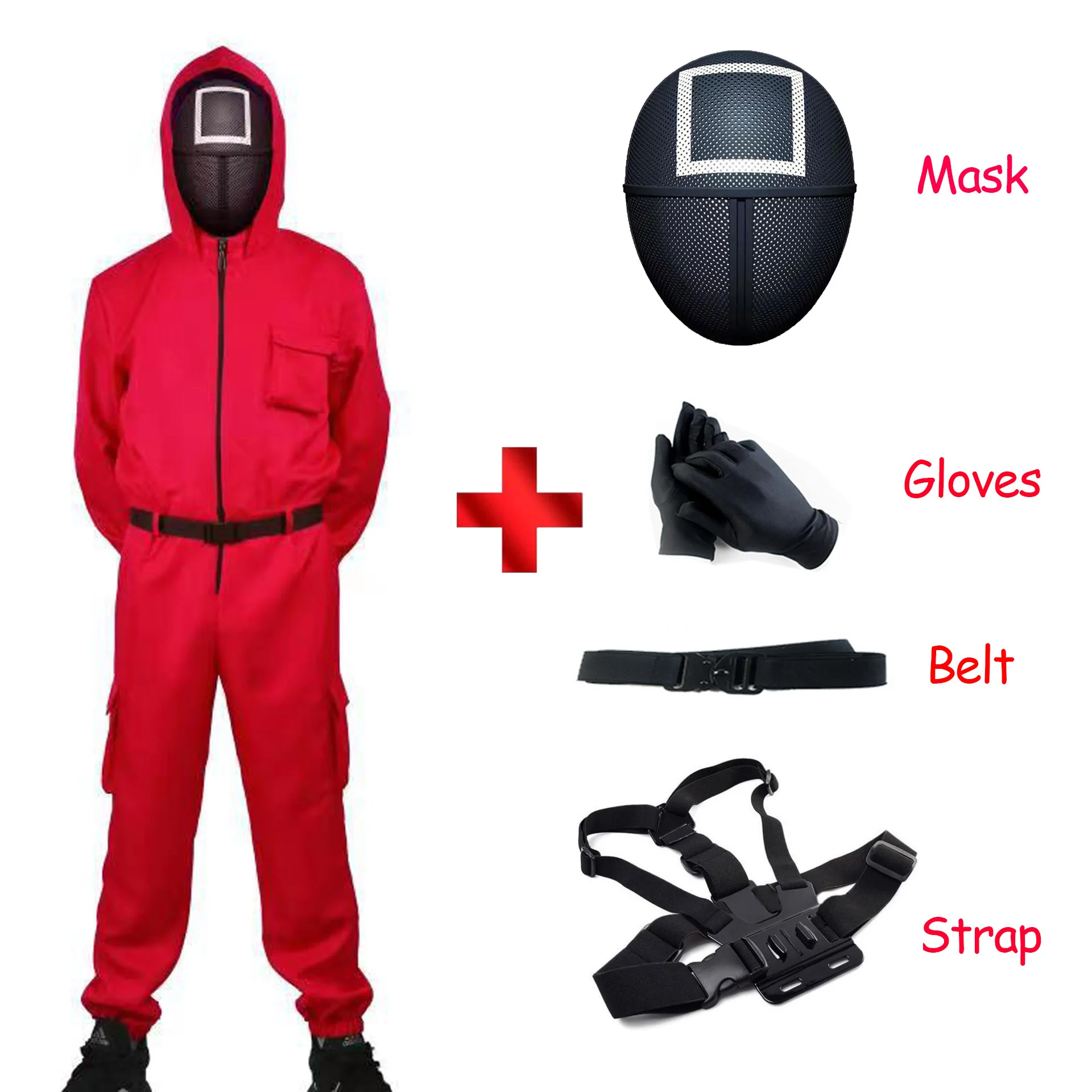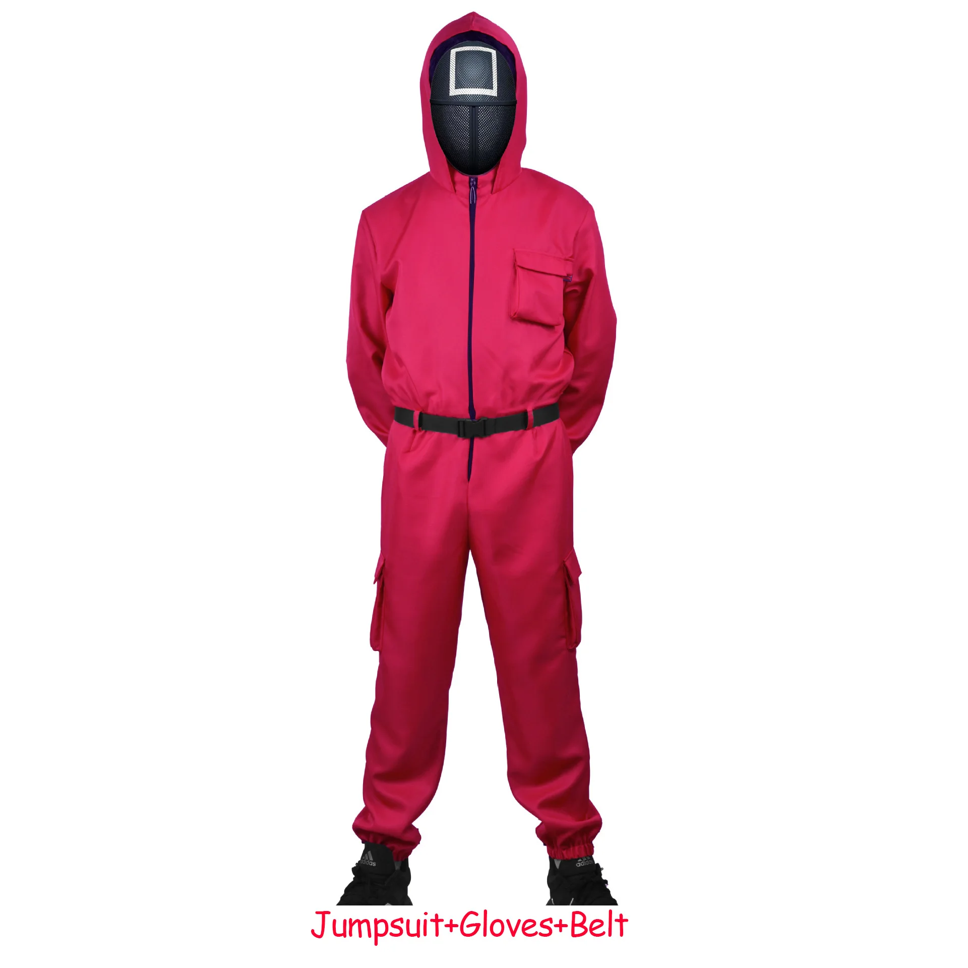 Игра кальмар, костюм на Хэллоуин для женщин, детей, девочек, мужчин, красный комбинезон, костюм для прыжков, маска для прыжков, косплей-игры