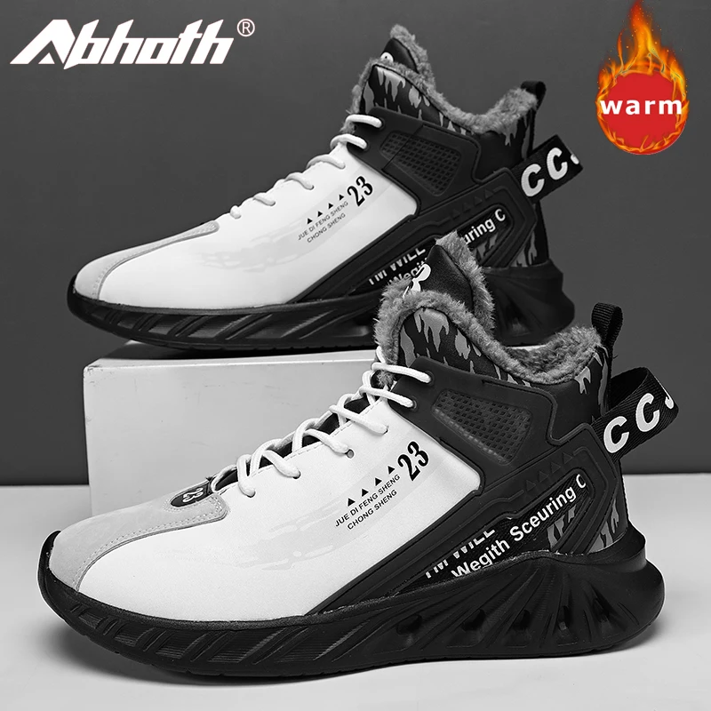 Мужские кроссовки для бега Abhoth, удобные Прогулочные кроссовки с высоким вырезом, плюшевые, сохраняющие тепло, Нескользящие, износостойкие, зимние кроссовки 45