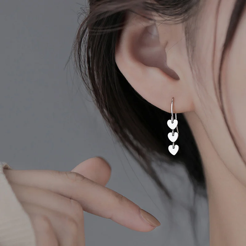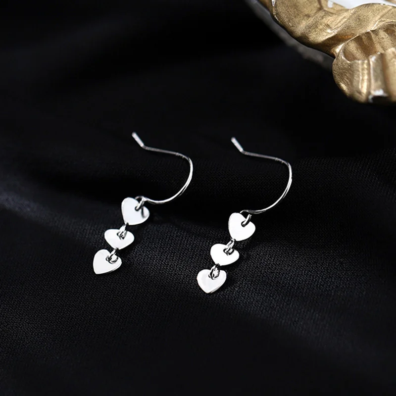 QMCOCO серебряный цвет три любовь сердце серьги для женщин девушек модные элегантные милые серьги кисточки Свадебные ювелирные изделия аксессуары