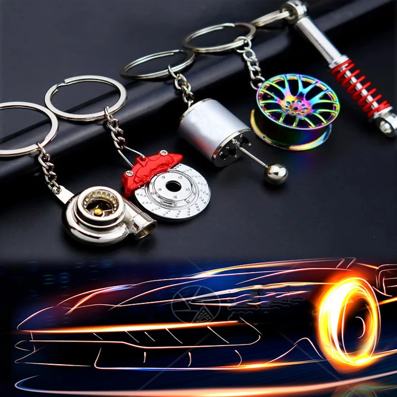 Брелок для ключей с турбокомпрессором для мужчин, креативный мини-брелок для ключей с вращающейся турбиной, аксессуары для интерьера автомобиля