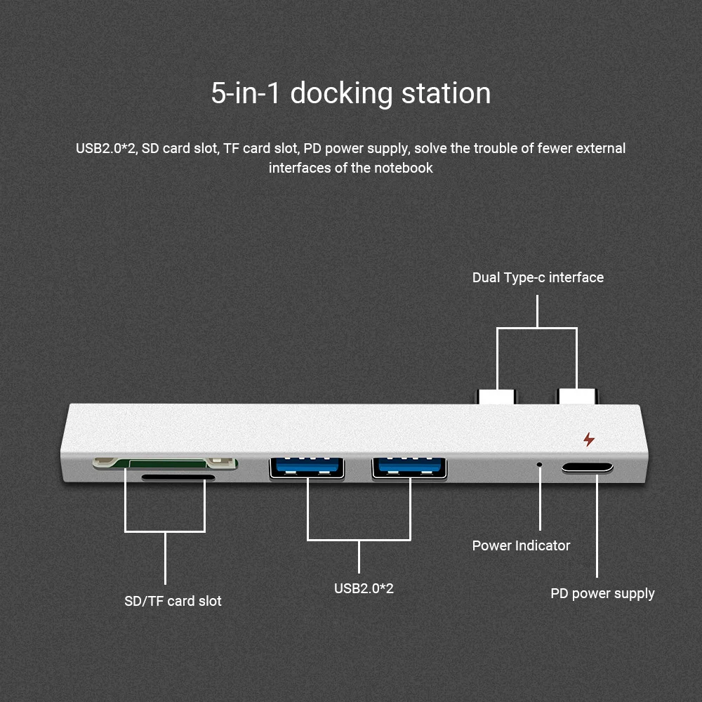 Базовая станция 5-в-1 из алюминиевого сплава, ноутбук C-типа usb-хаб