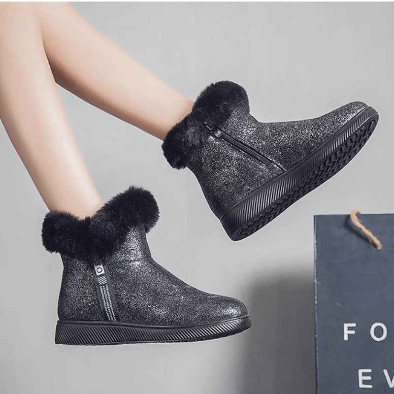Женские зимние ботинки с блестками, теплые плюшевые ботильоны на платформе, без застежки, 2021