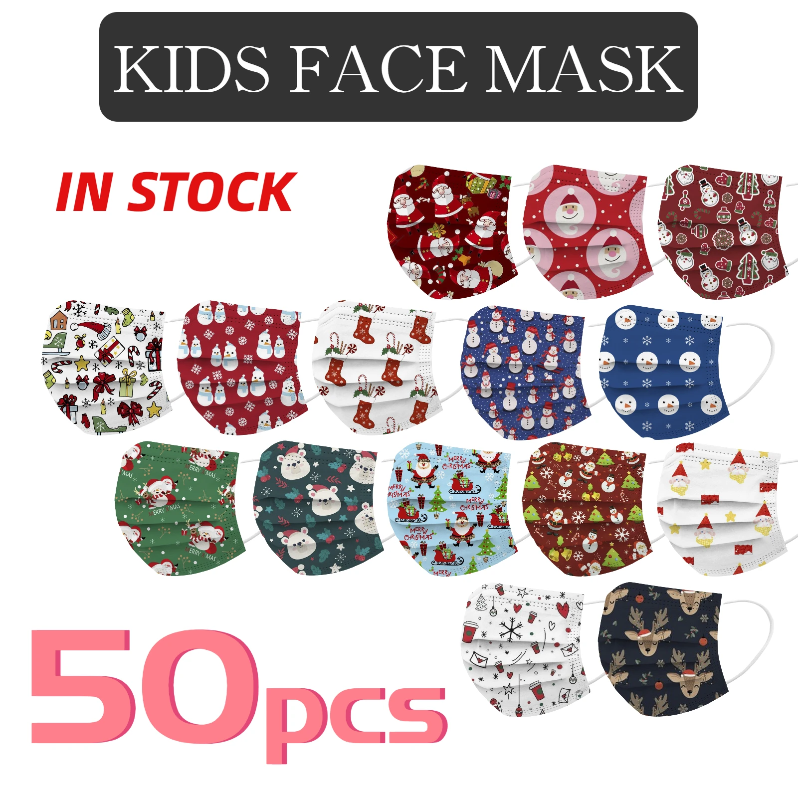 50 шт., одноразовые рождественские маски для лица для детей, зимняя 3-слойная маска для лица с милым рисунком, Веселая детская маска, маски для детей