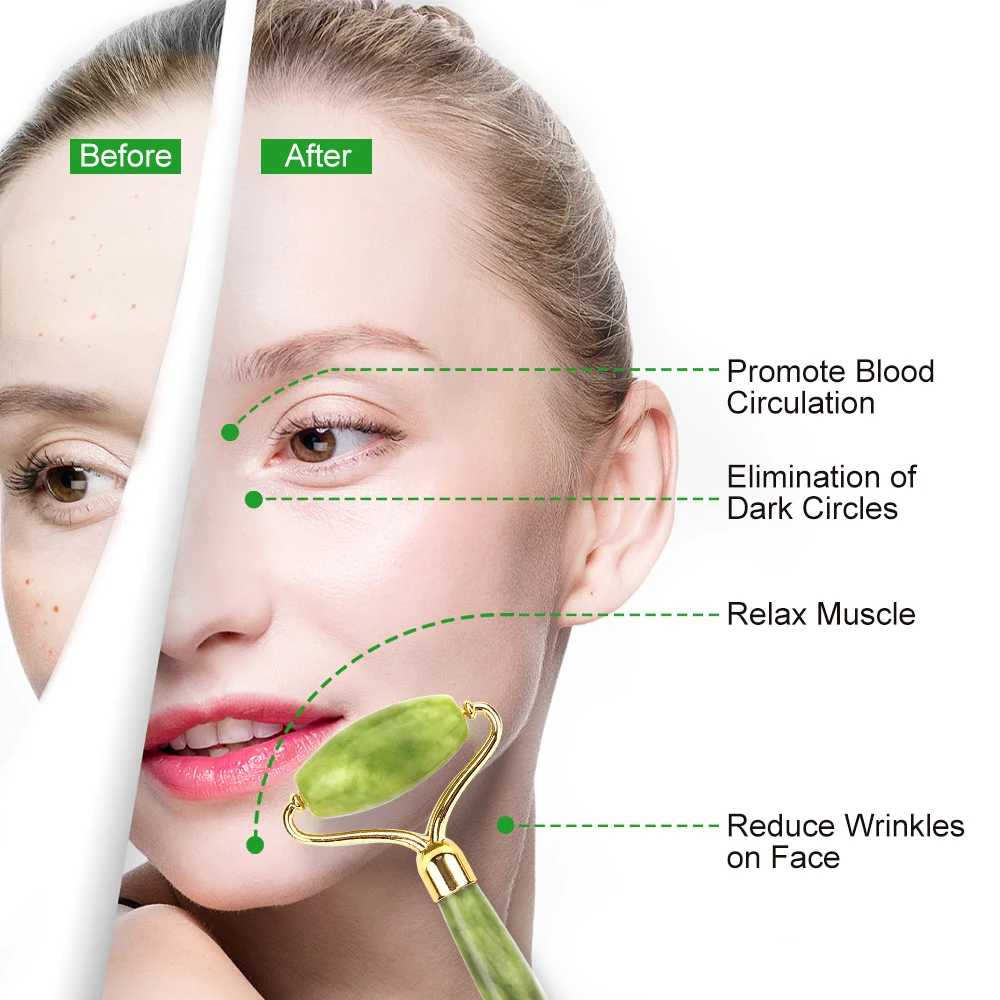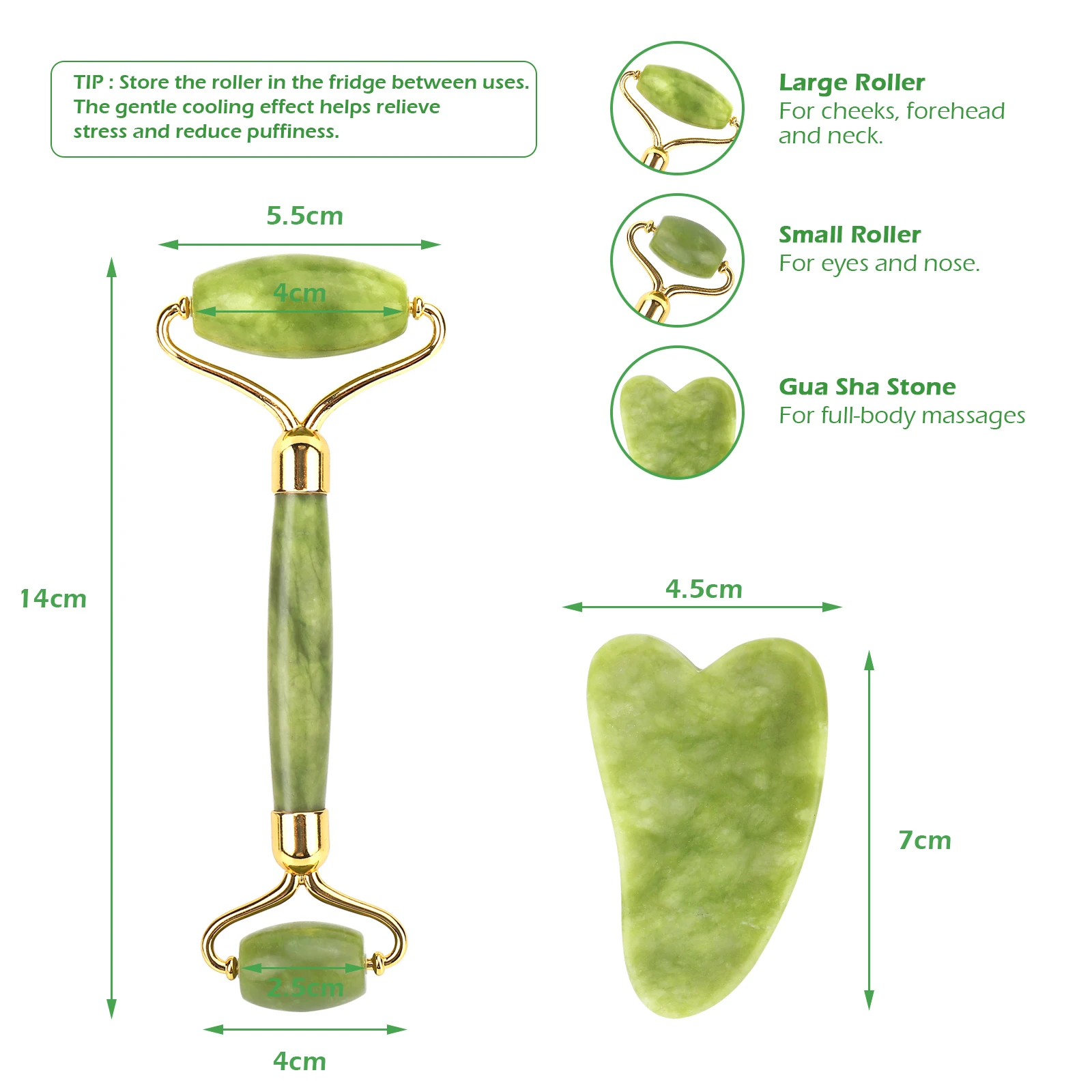 Натуральный массажер для лица для гуаша, Нефритовый ролик, семейный набор, массажер для лица, гуаша, набор для ухода за кожей лица и шеи