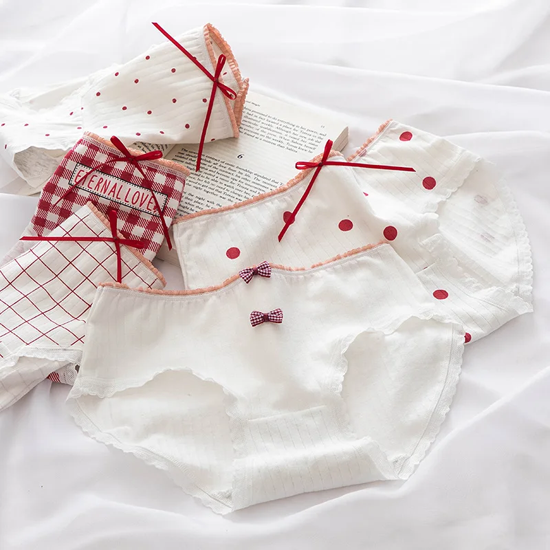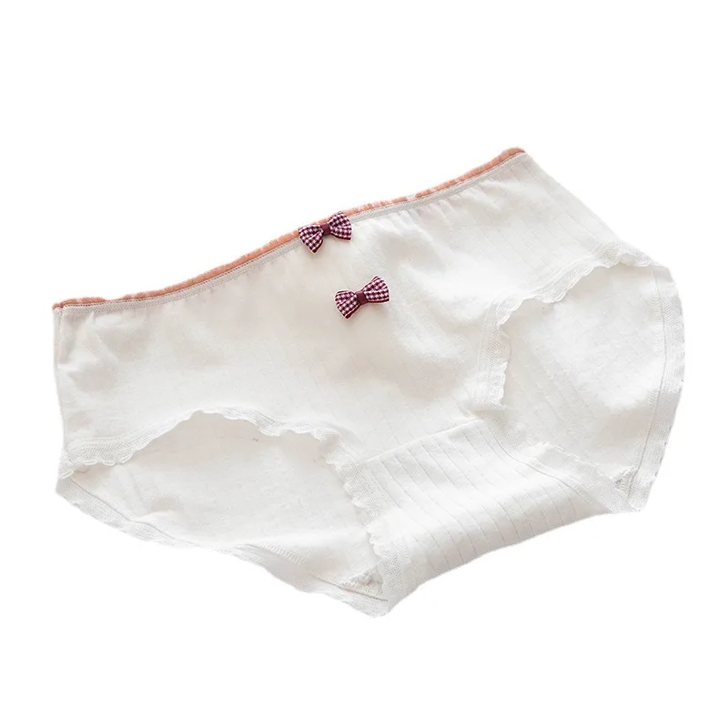 Японское милое клетчатое нижнее белье с бантом, женское хлопковое нижнее белье с ленточным швом и средней талией, студенческие трусы