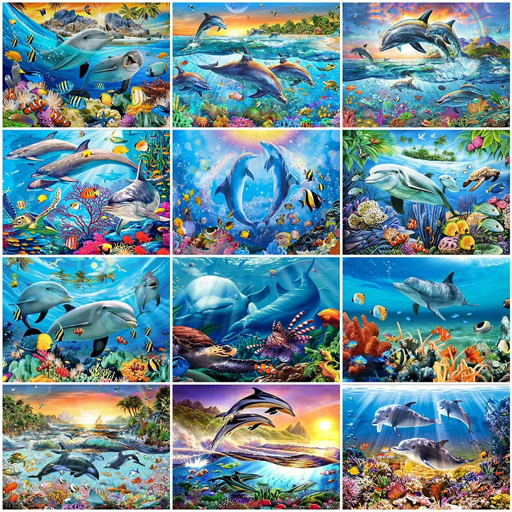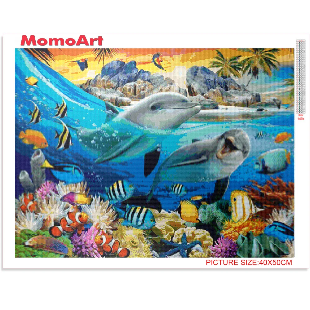 MomoArt Алмазная вышивка Дельфин животное картина стразы Алмазная мозаика Закат вышивка крестом наборы Алмазная Живопись Океан Новое поступление Украшение дома