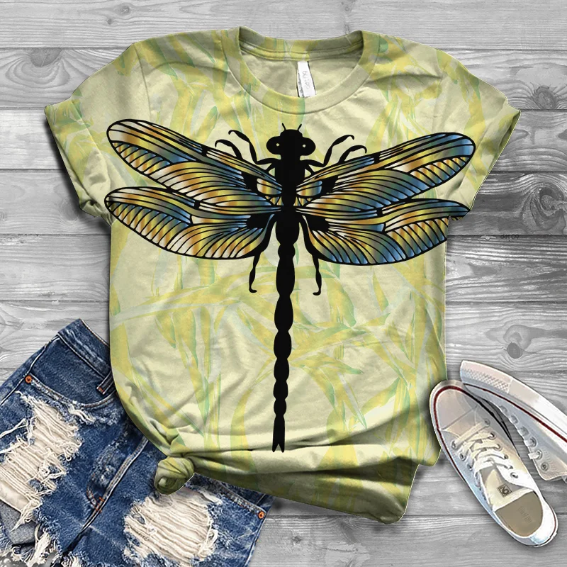Женская футболка с 3D-принтом стрекозы, Повседневная футболка с кру...