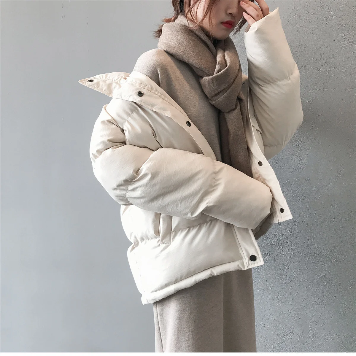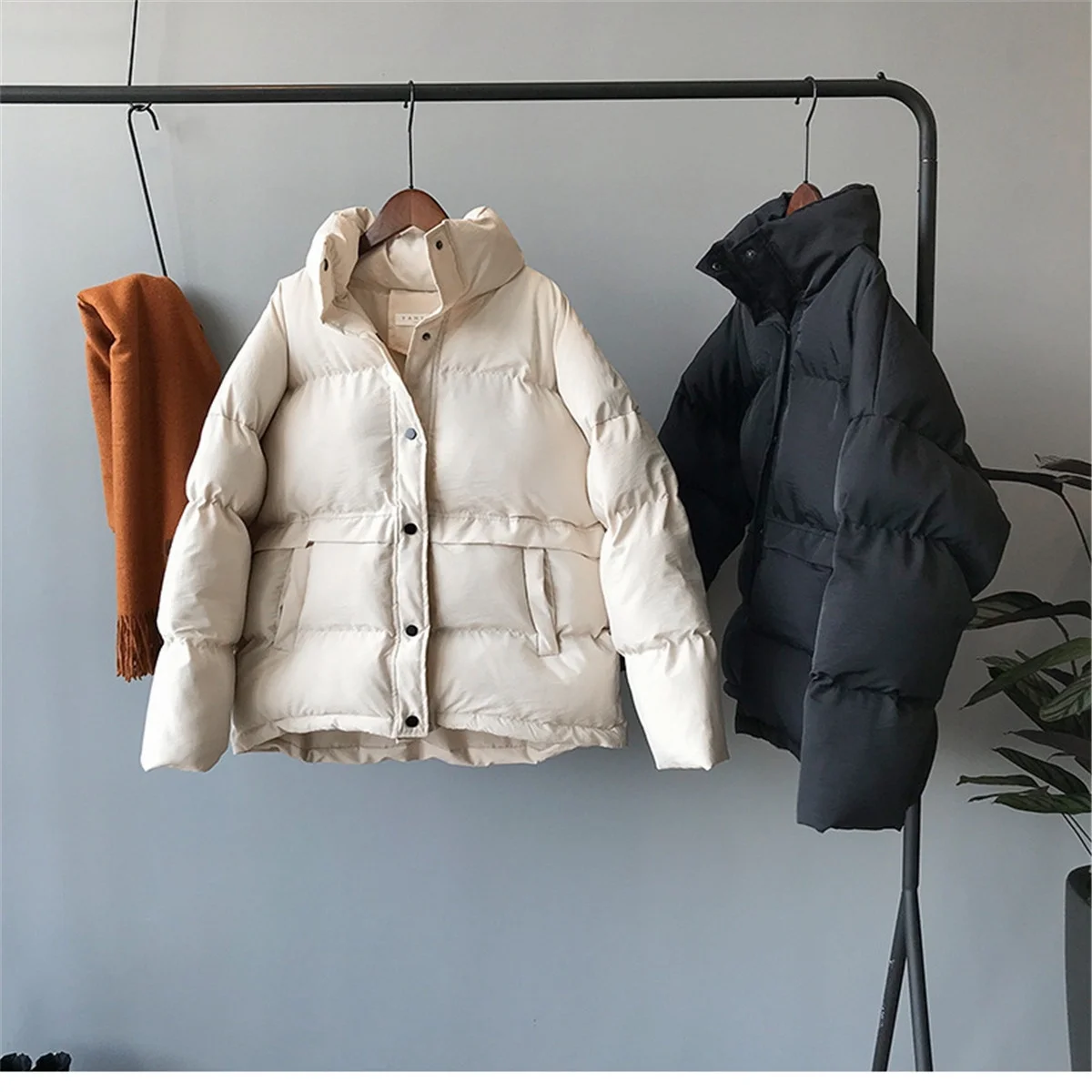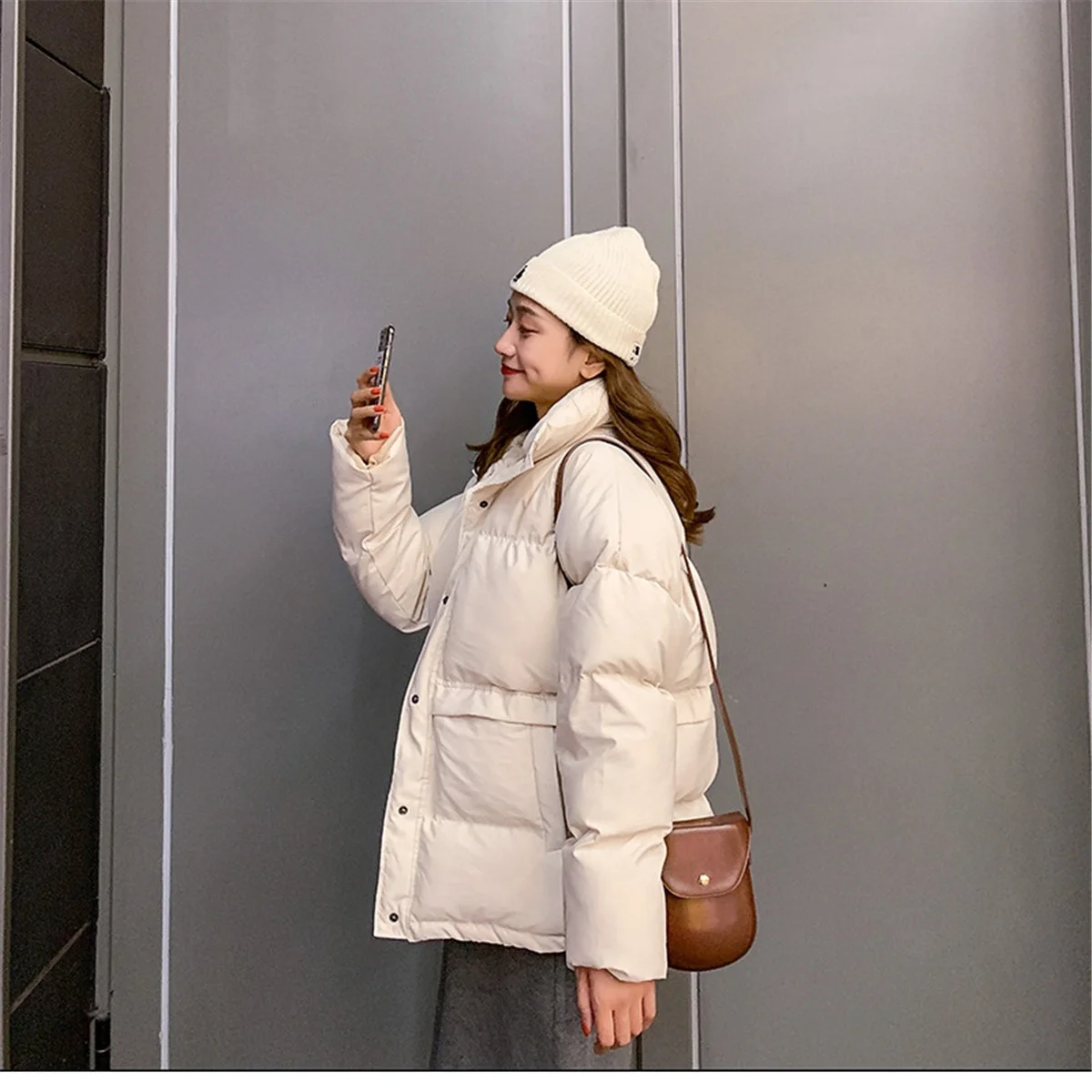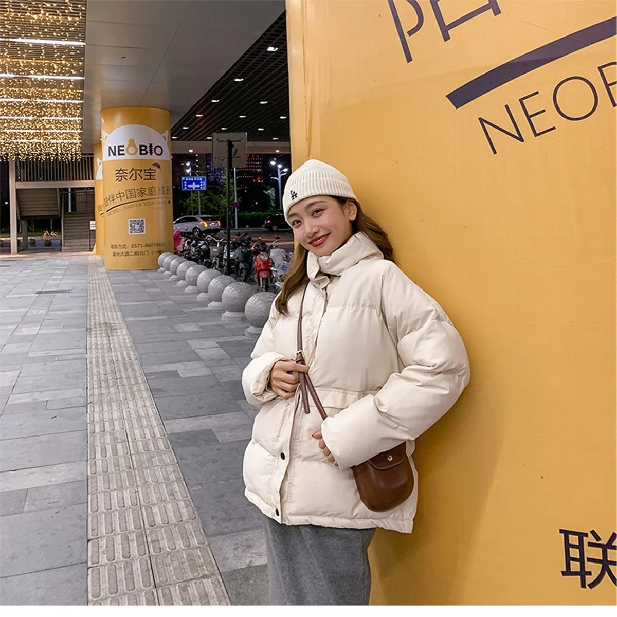 Модный Однотонный женский зимний пуховик с воротником-стойкой, короткое однобортное пальто, парка в стиле преппи, Женская шикарная верхняя одежда для женщин