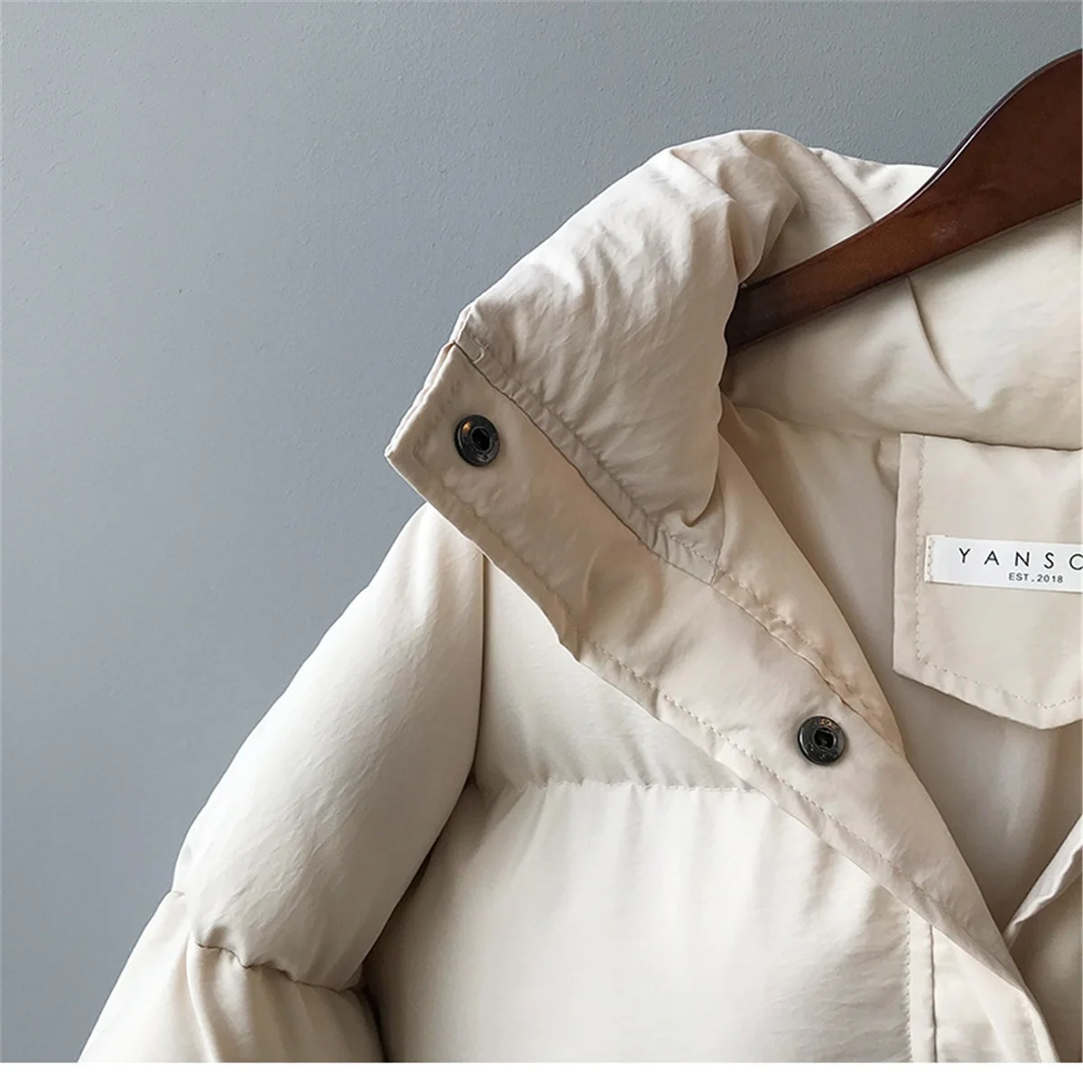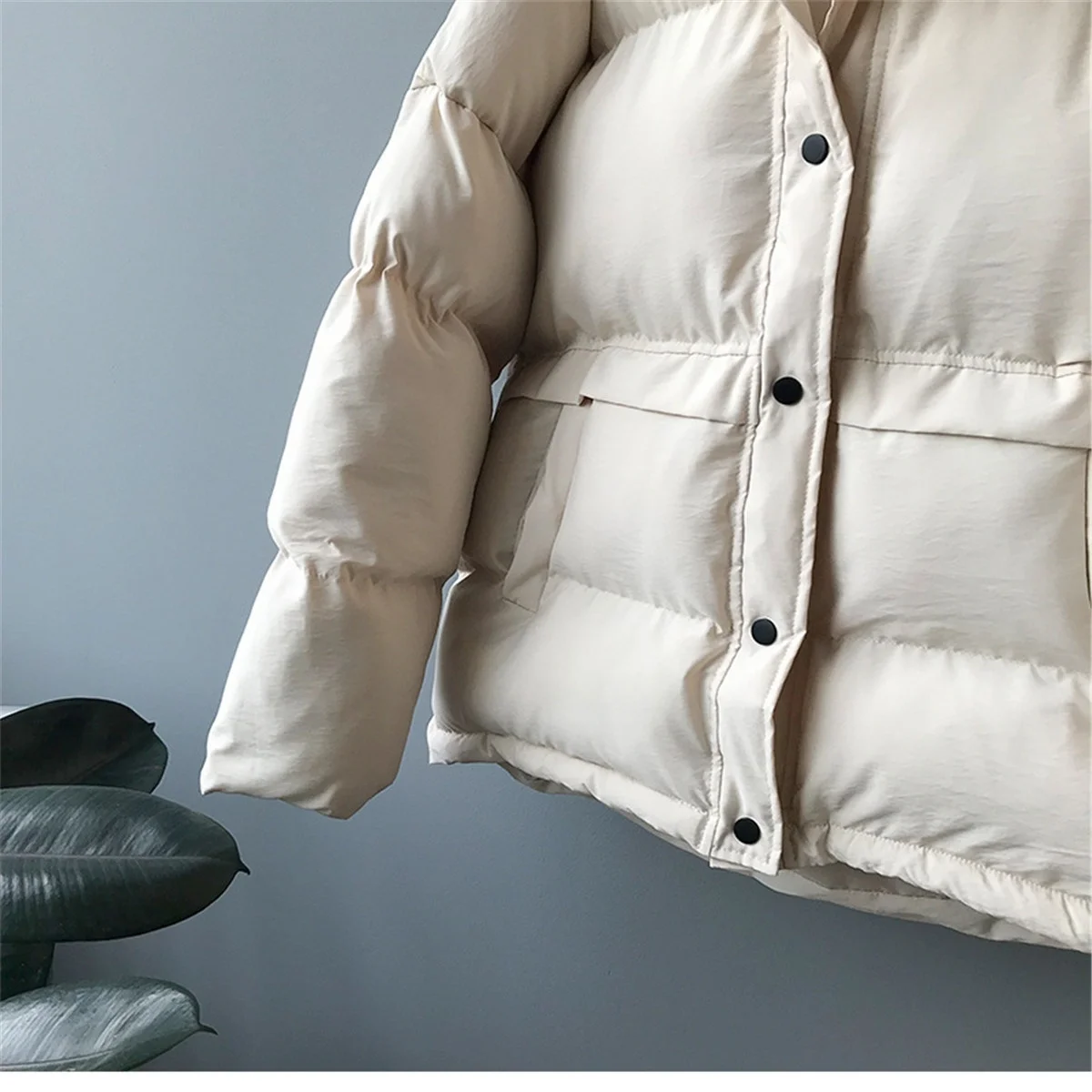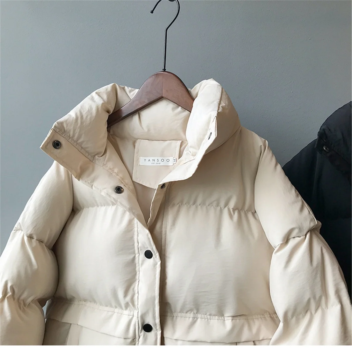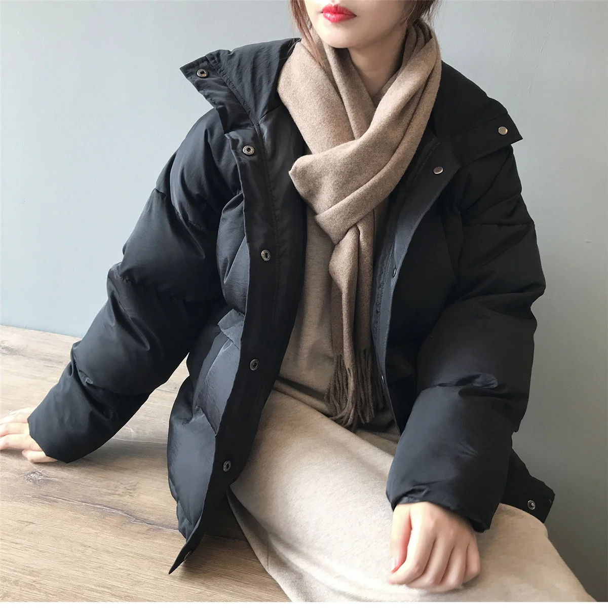 Модный Однотонный женский зимний пуховик с воротником-стойкой, короткое однобортное пальто, парка в стиле преппи, Женская шикарная верхняя одежда для женщин