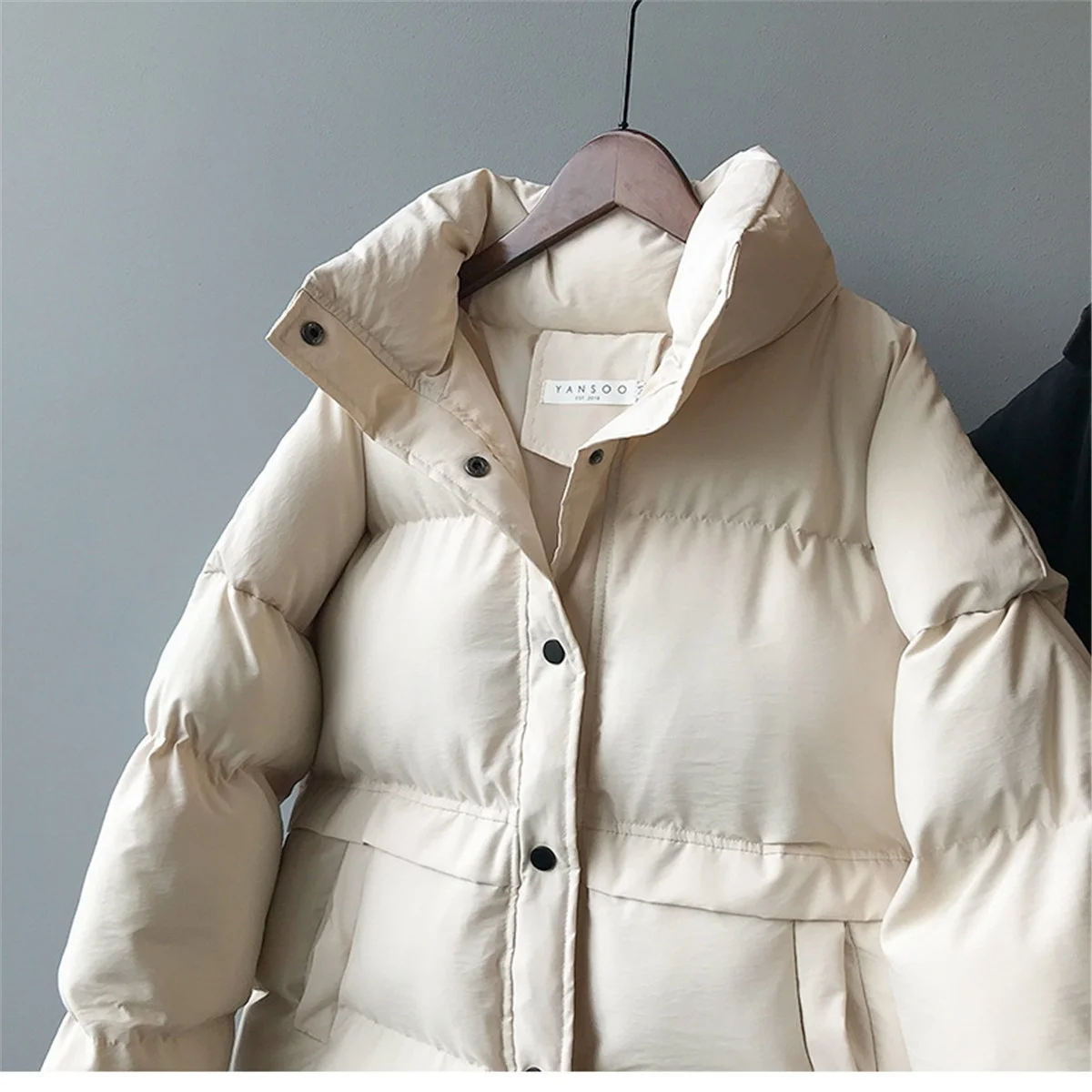 Женское пальто с воротником-стойкой, зимнее, плотное, свободное, 2021