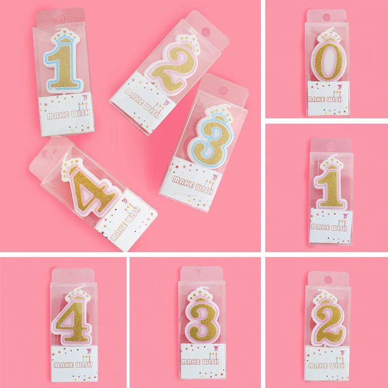 Блестящие золотые розовыесиние свечи в виде цифр на день рождения д...