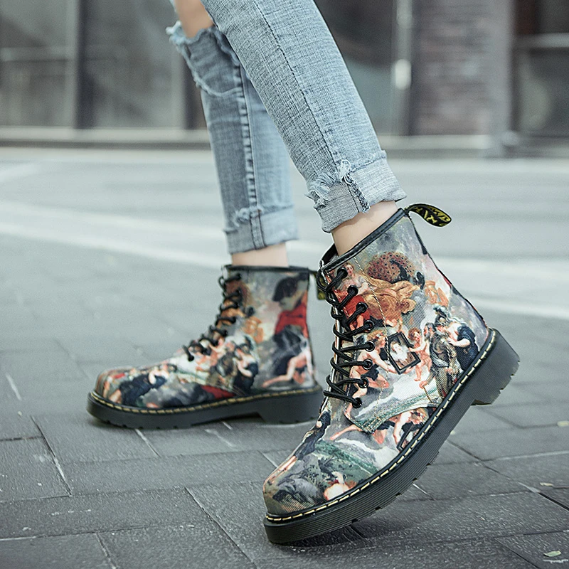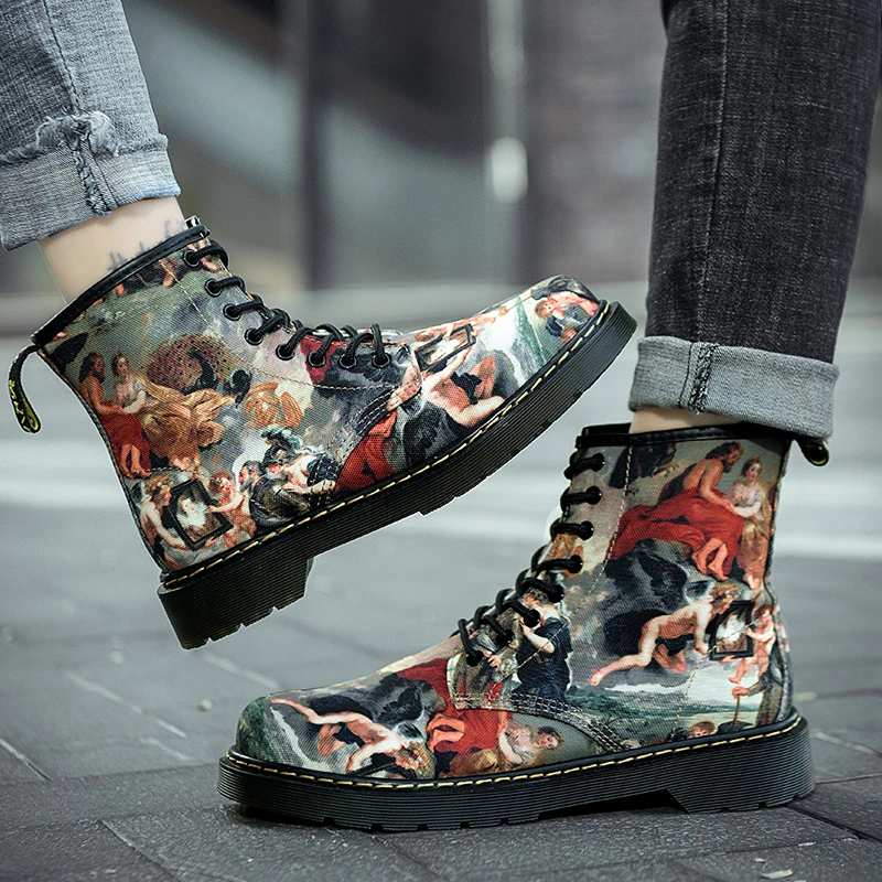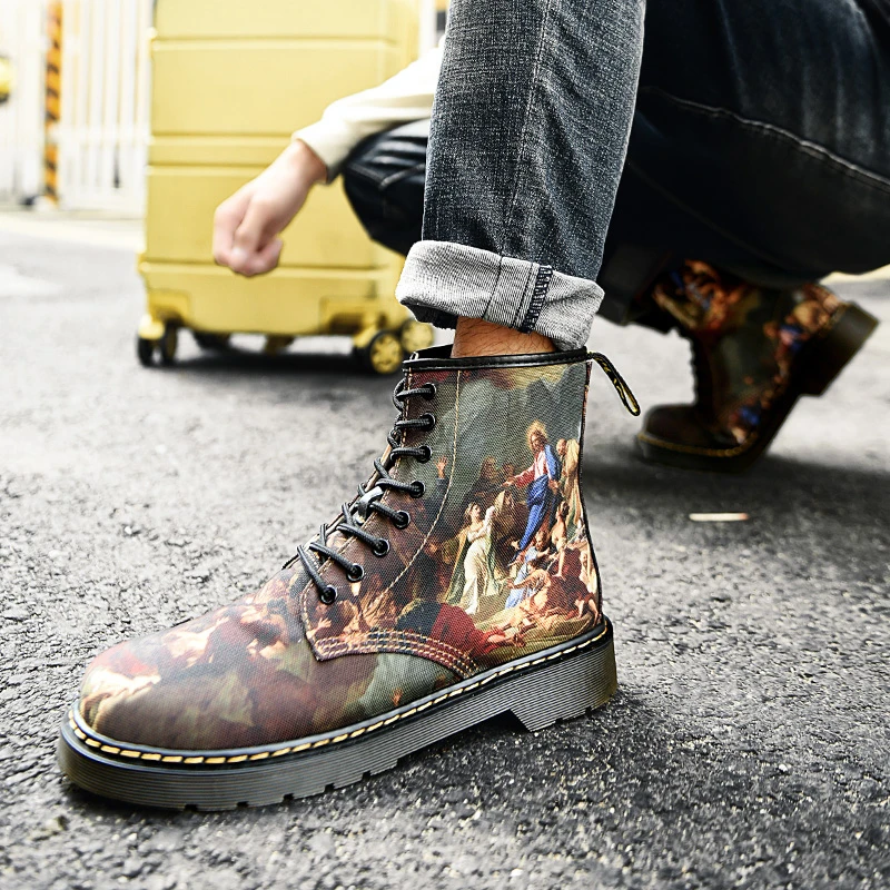Высокие повседневные мужские ботинки индивидуальная ручная роспись ботинки Martens в британском стиле женские ботильоны модные кожаные ботинки