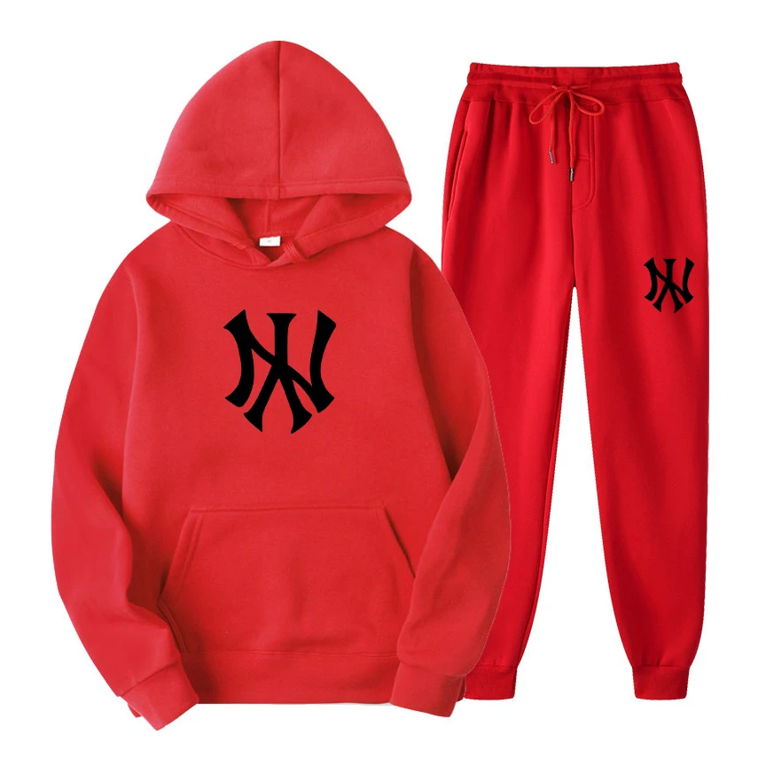 Зимний комплект с худи для мужчин, модные флисовые красные толстовк...