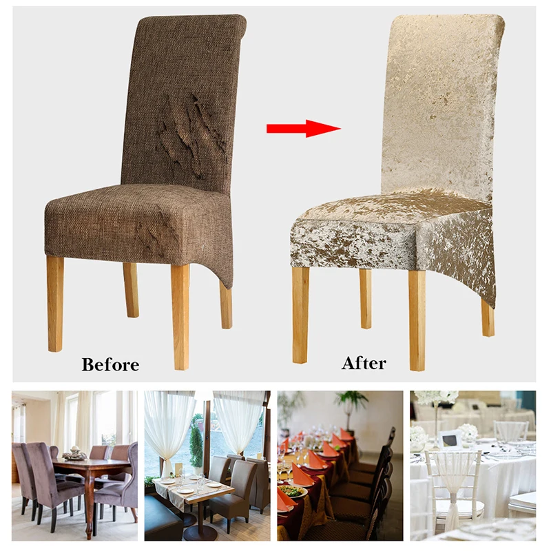 2020 Блестящий бархат XL размер спандекс чехлы для стульев эластичн...