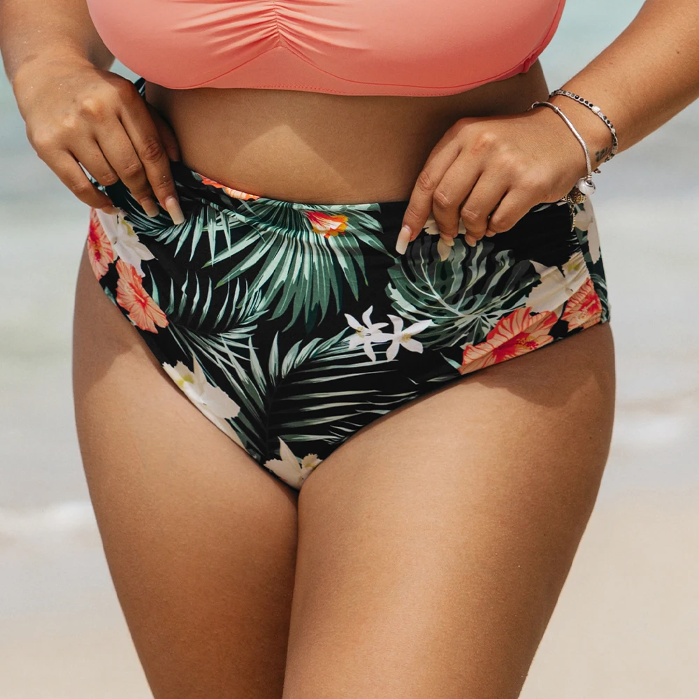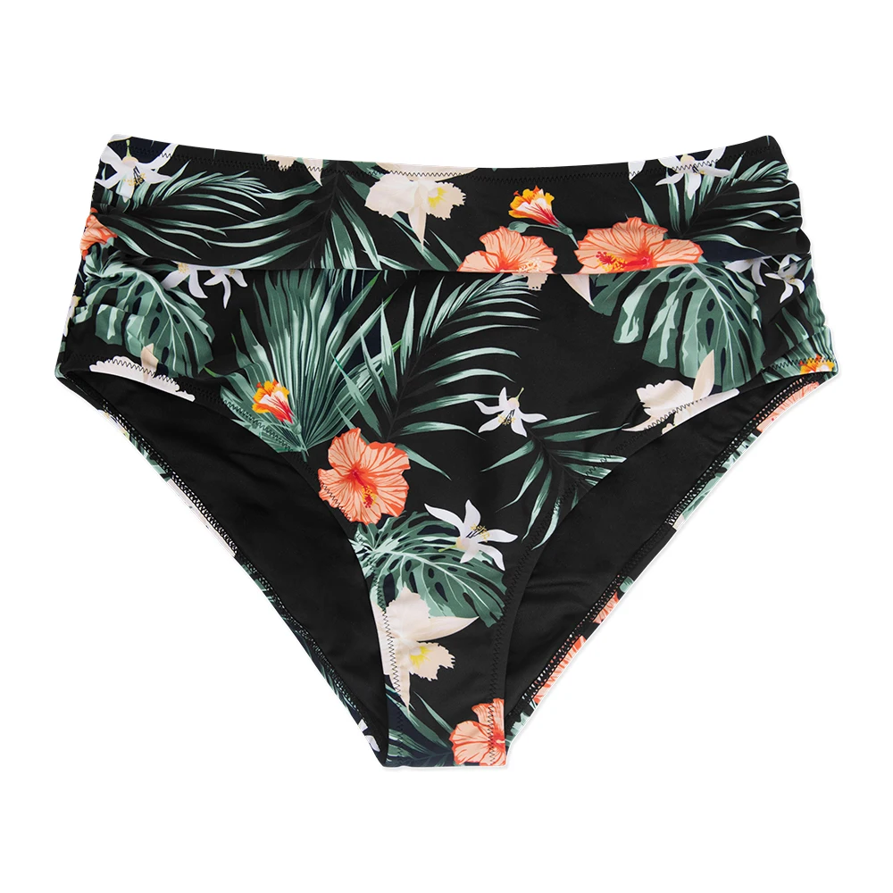 CUPSHE размера плюс зеленый цветочный Высокая талия бикини Низ Купальник для женщин сексуальные большие трусики короткие 2022 раздельное Бикини Низ