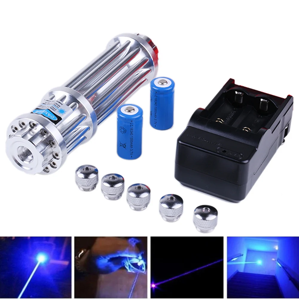 Синяя лазерная указка 450 нм, лазерный фонарик высокой мощности, поджигающий спичек, самый мощный лазер, прицел, поджигание спичек, охотничье оборудование