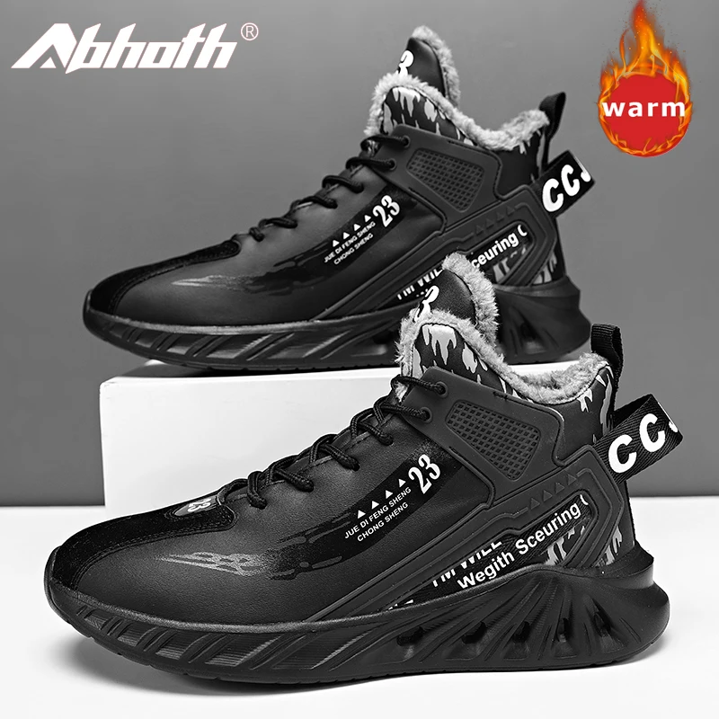Кроссовки Abhoth мужские с высоким вырезом, плюшевые удобные прогулочные кеды, сохраняющие тепло, Нескользящие, износостойкие, зимние, 39-45
