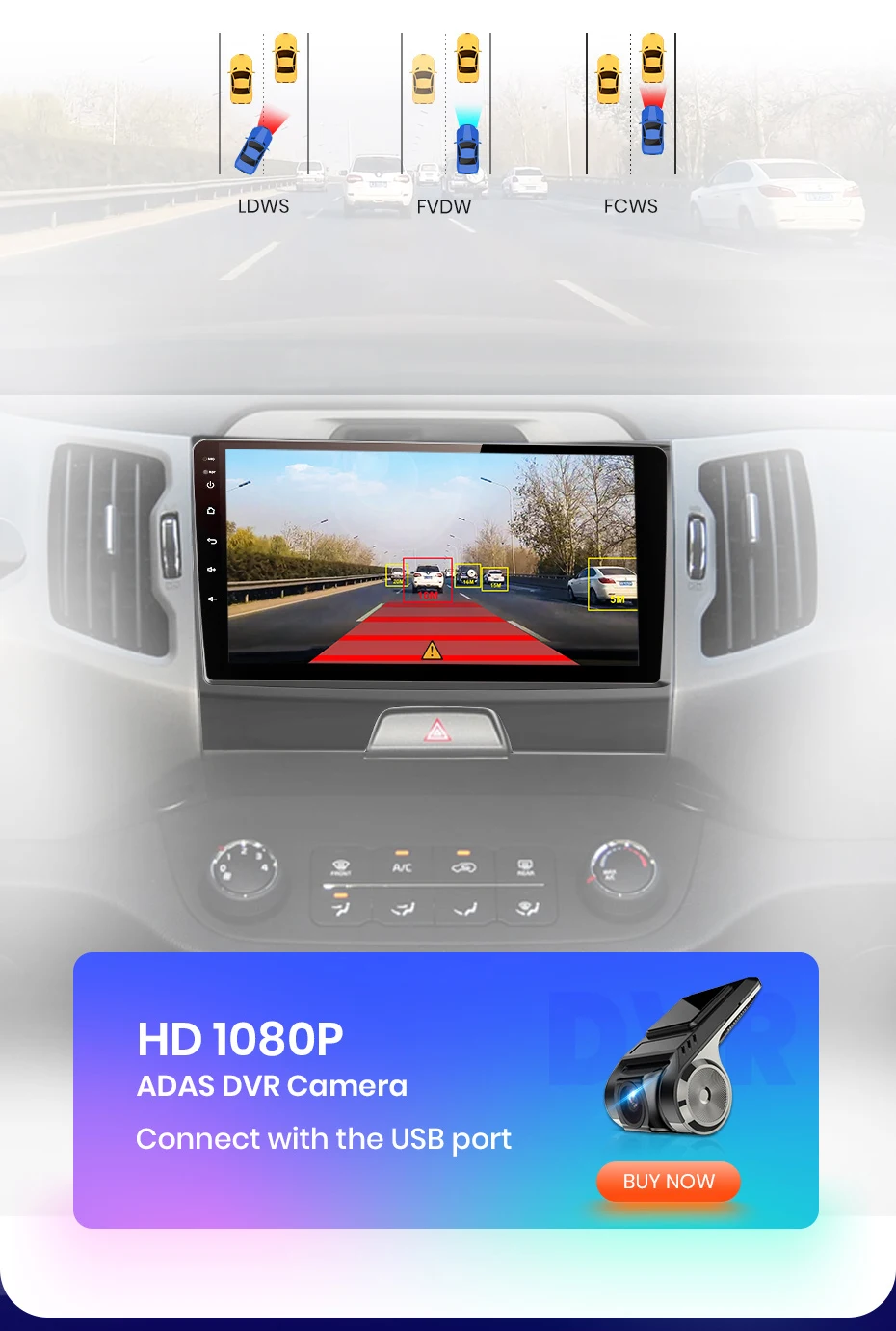 Когда автомобильное радио подключено к ADAS video recorder, это сделает передовую систему помощи при вождении, И предупредит вас, если ваш автомобиль слишком близко к переднему автомобилю или если ваш автомобиль отклоняется от полосы движения, чтобы помочь вашему вождению безопаснее и проще.