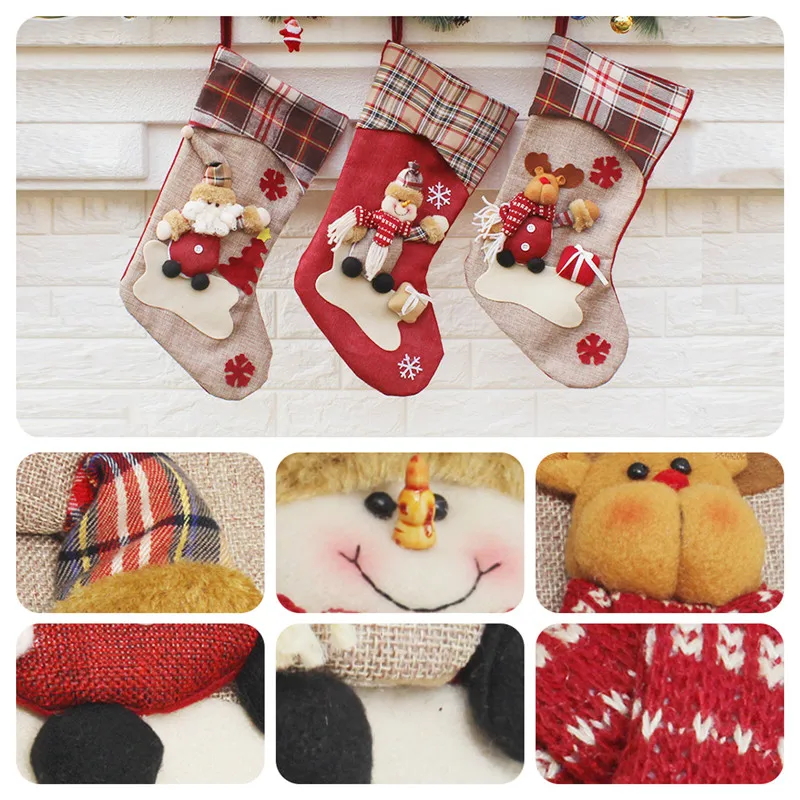 k5Large Stockings Santa Elk Fabric Gift Socks Christmas
