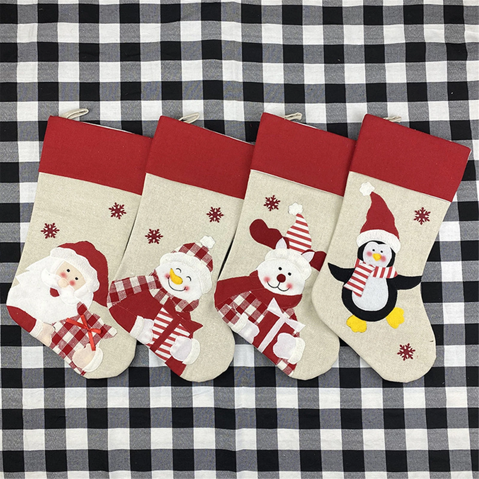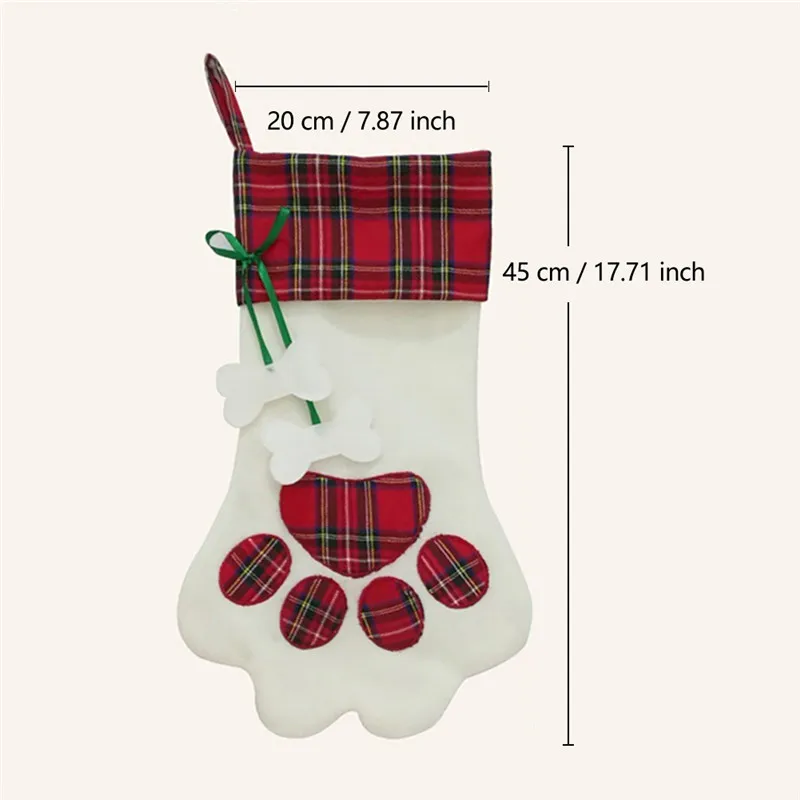 Классические большие рождественские чулки в красно-черную клетку с кошачьей лапой, рождественские чулки, тканевый мешок для конфет, подарочные украшения для носков для дома
