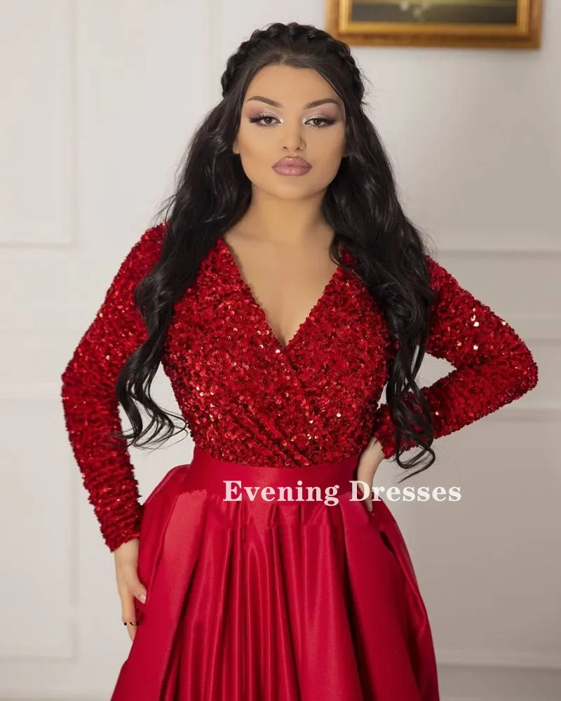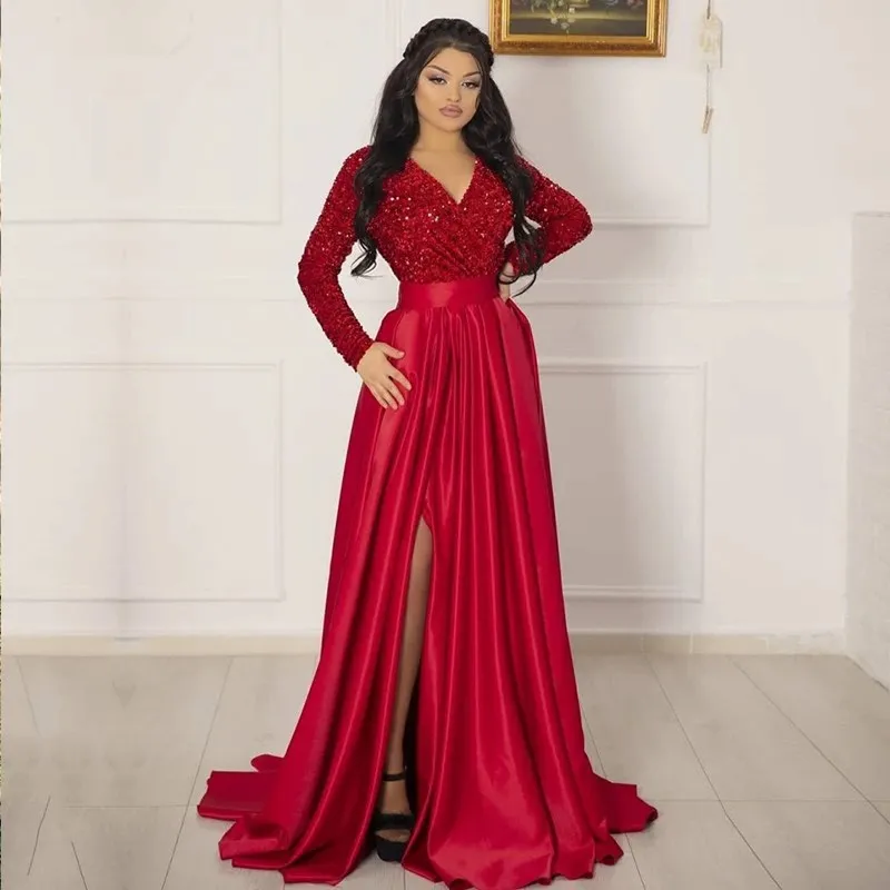 Вечерние платья с красными бусинами, Длинные арабские платья для вы...