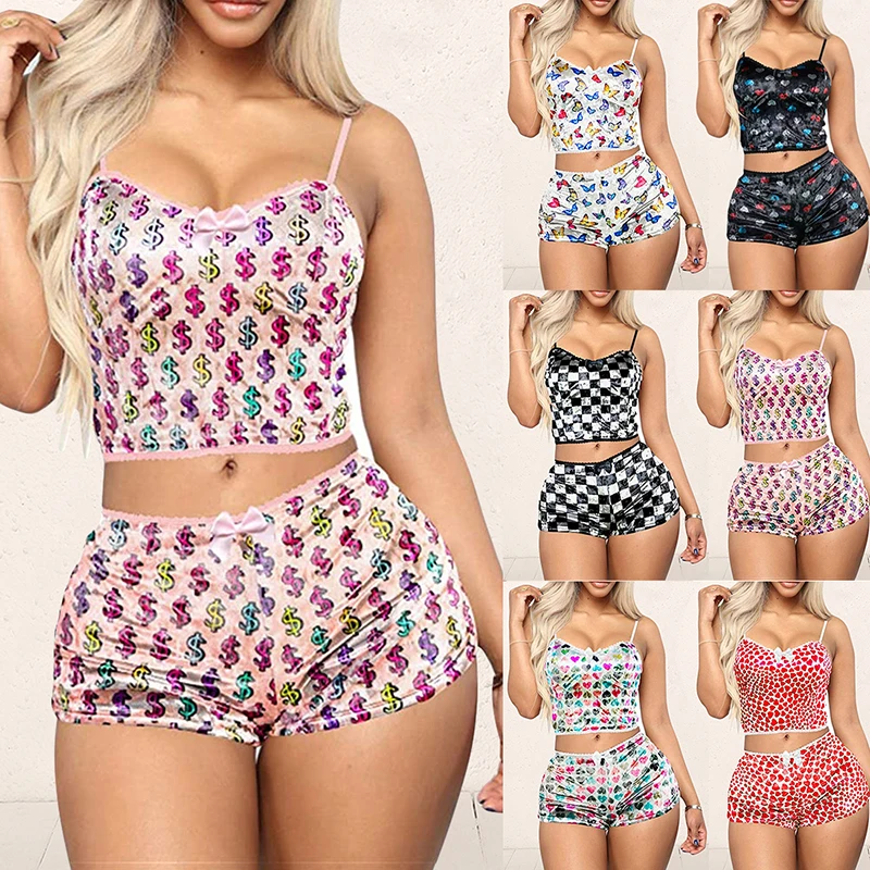 Женский бархатный пижамный комплект, сексуальный короткий пижамный ...