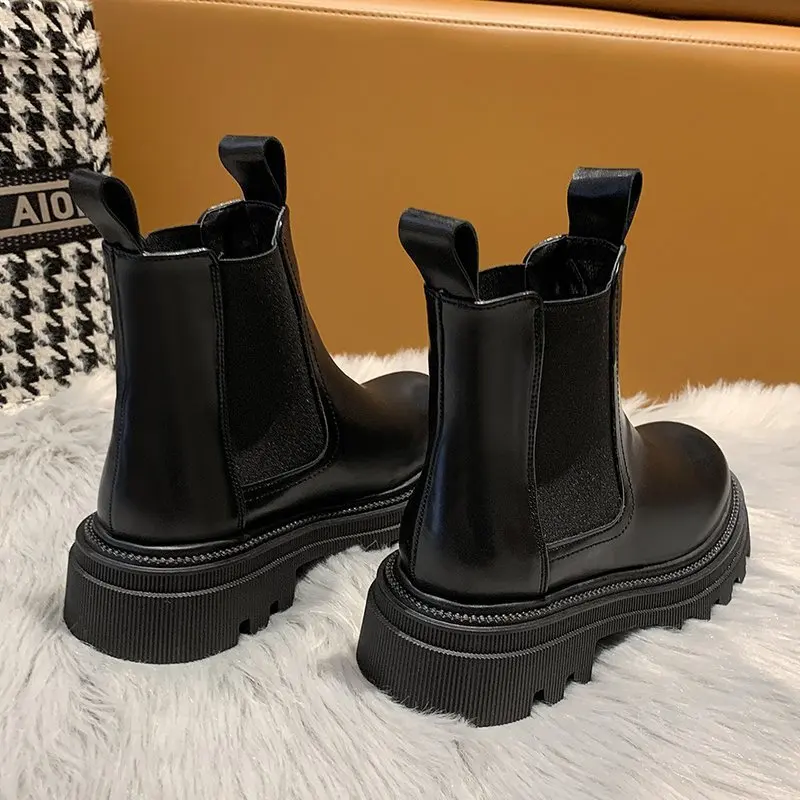 Женские ботинки челси на платформе, черные, бежевые или белые полус...